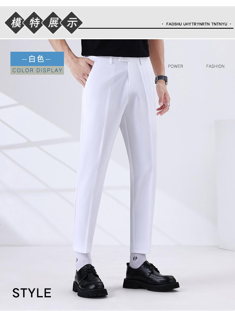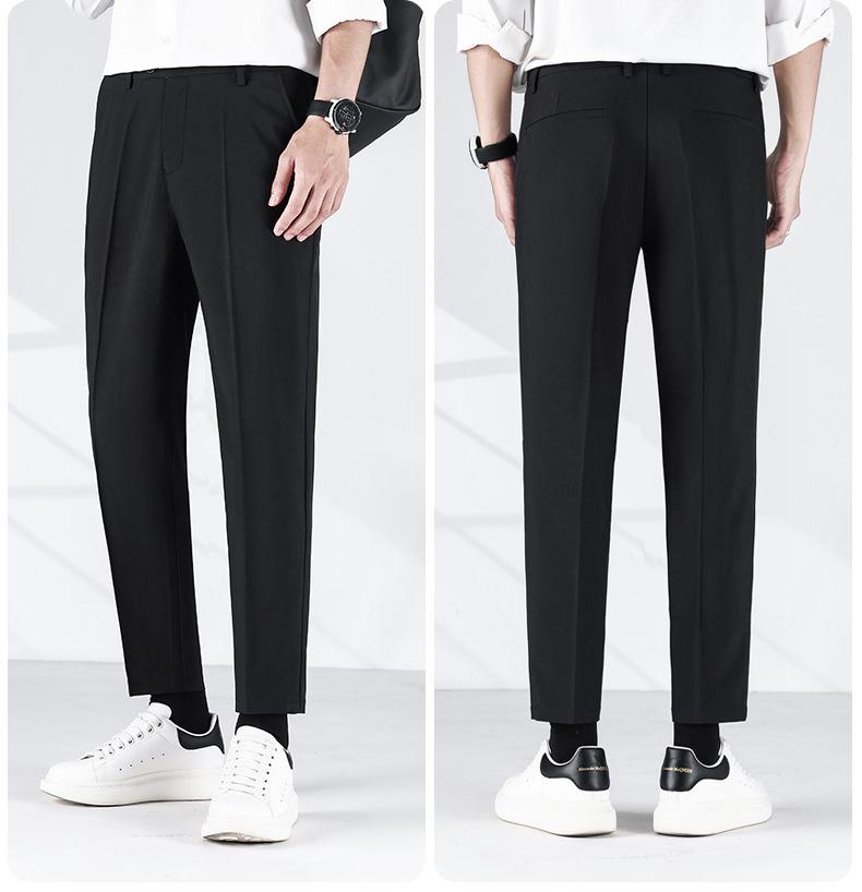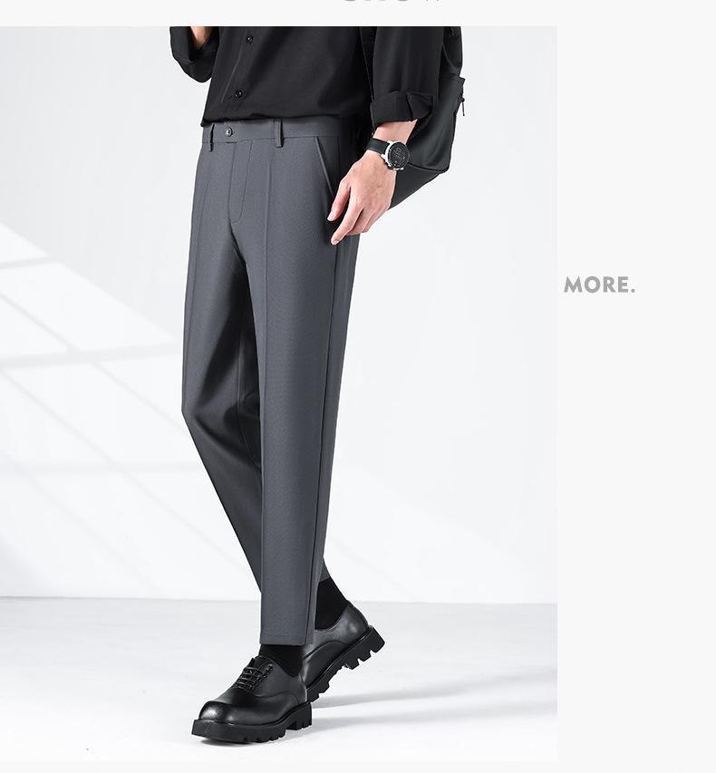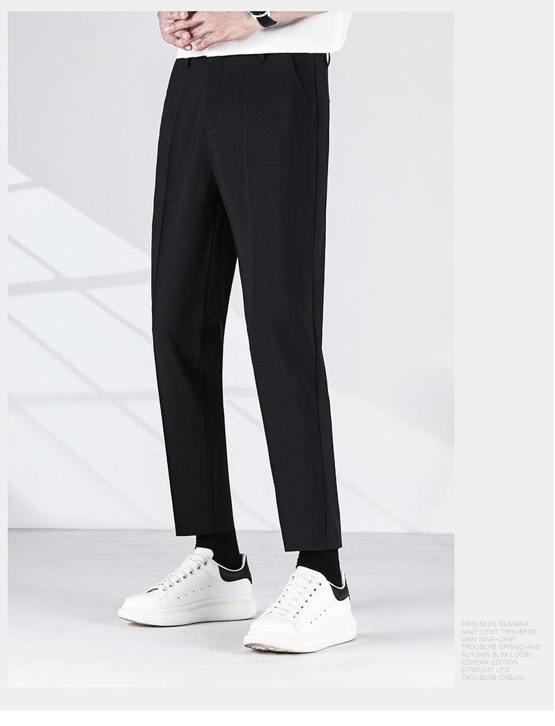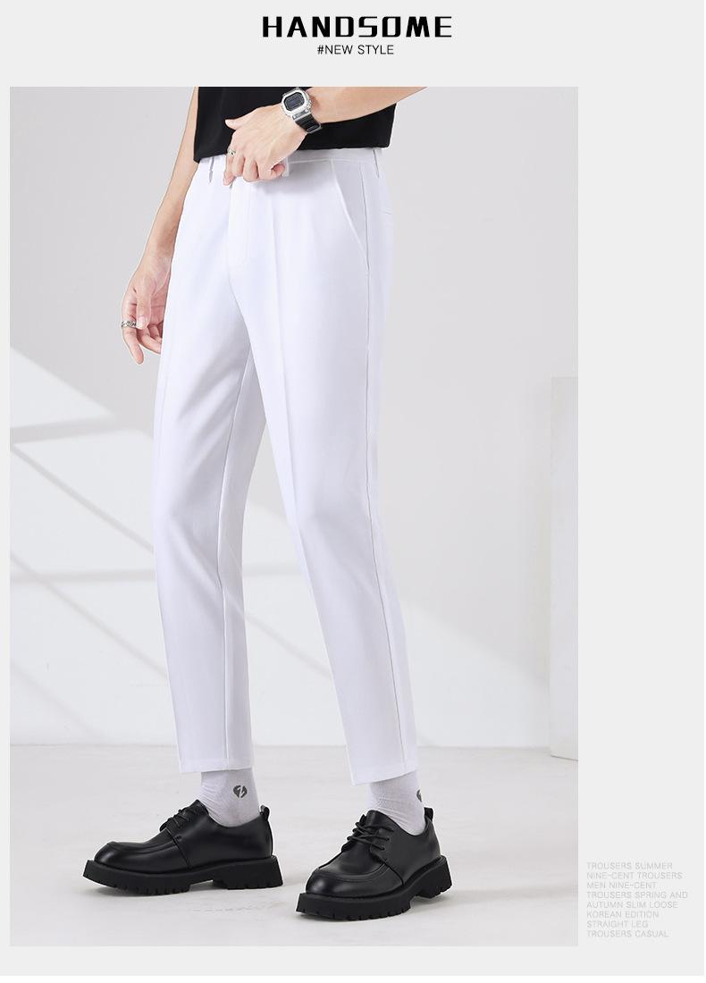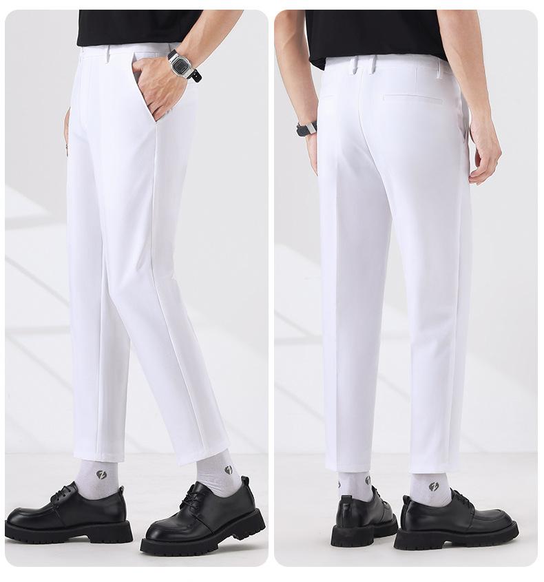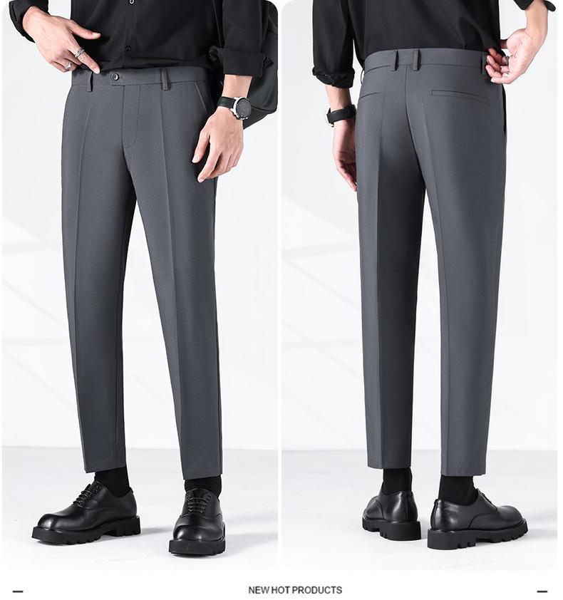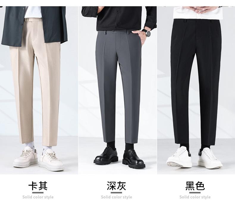 Calças casuais masculinas novas, estilo coreano, retas, slim fit, leves, para negócios, comprimento até o tornozelo, calças de terno britânicas antirrugas
