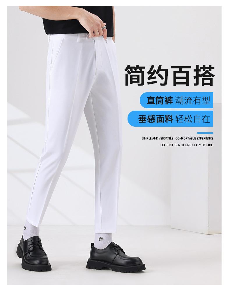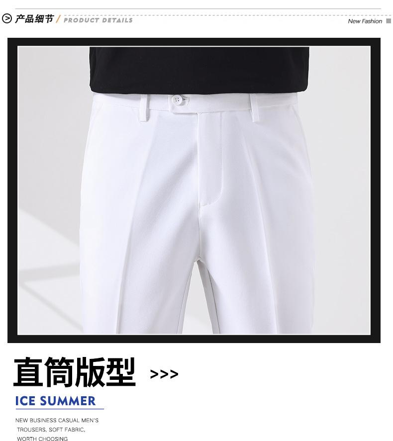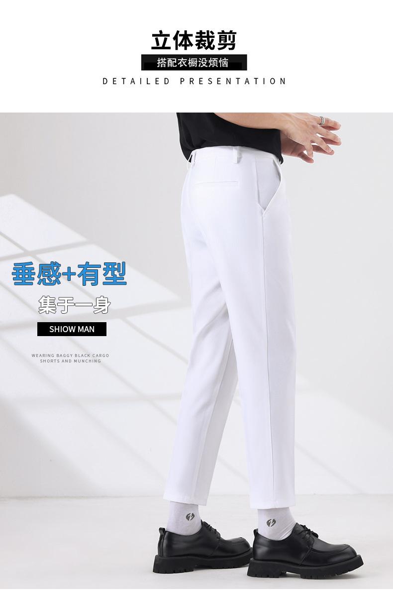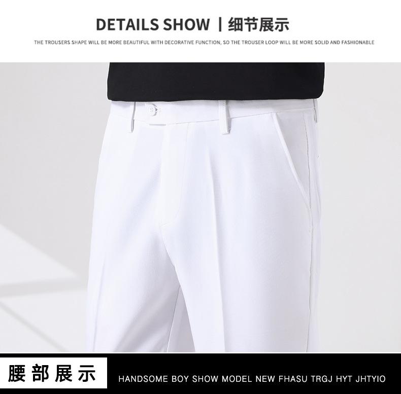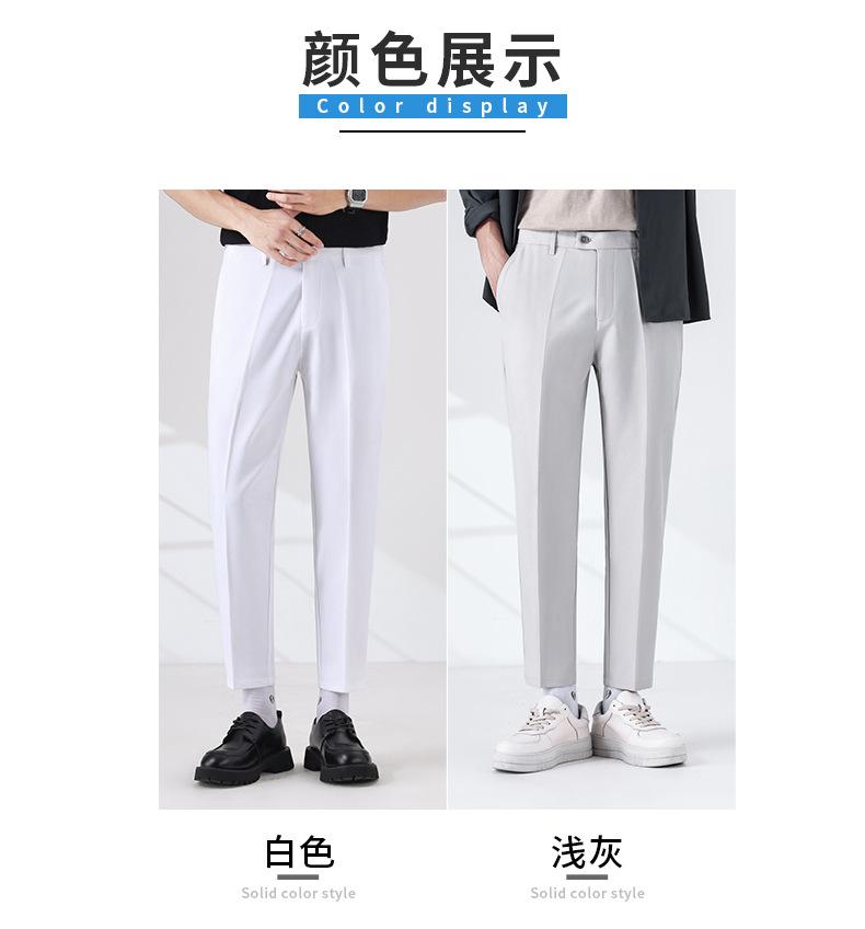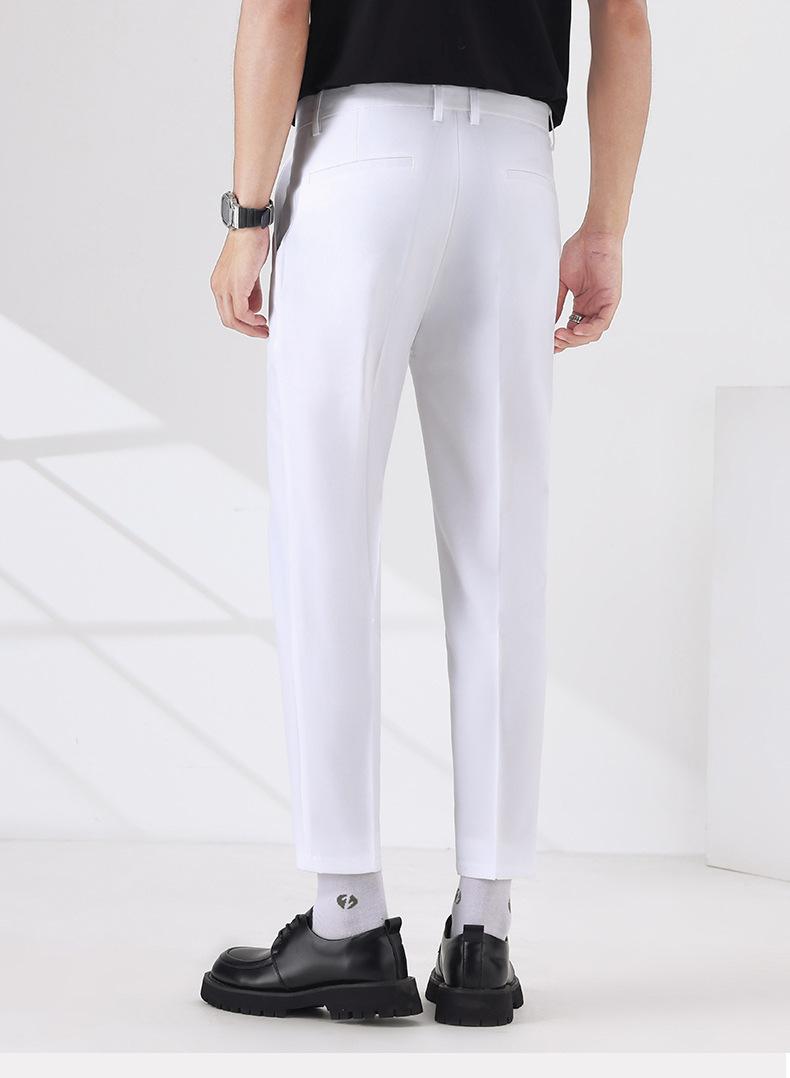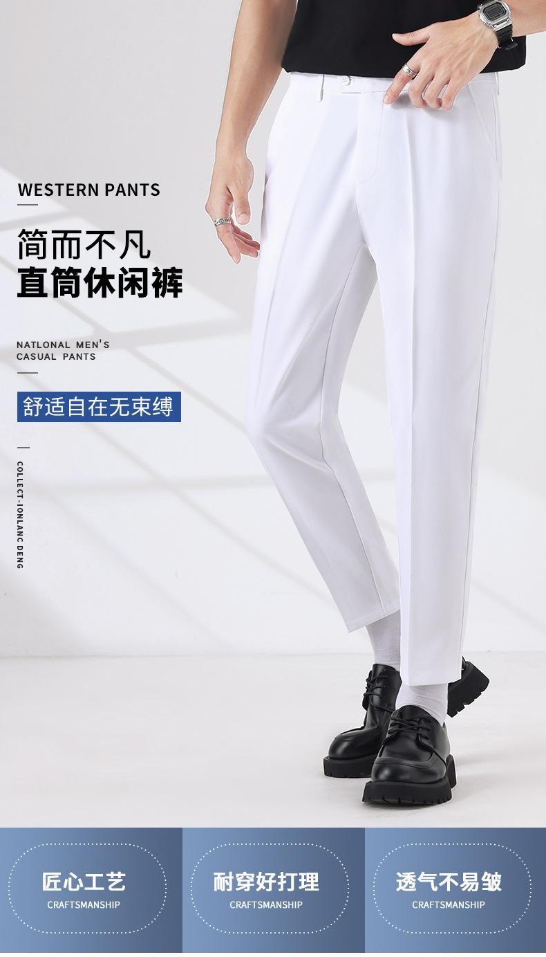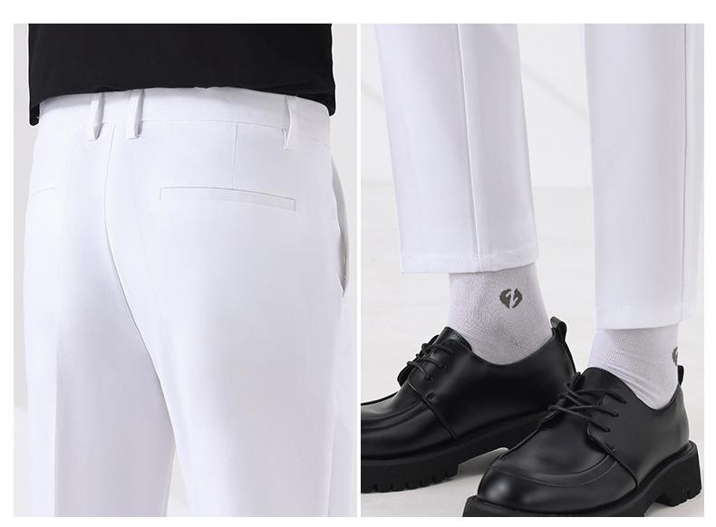 Calças casuais masculinas novas, estilo coreano, retas, slim fit, leves, para negócios, comprimento até o tornozelo, calças de terno britânicas antirrugas