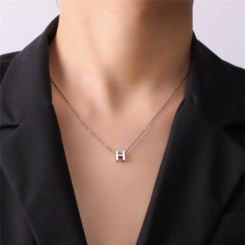Fornecimento transfronteiriço DIY joias acessórios acessórios aço inoxidável médio perfurado 26 letras inglesas pingente colar pingente