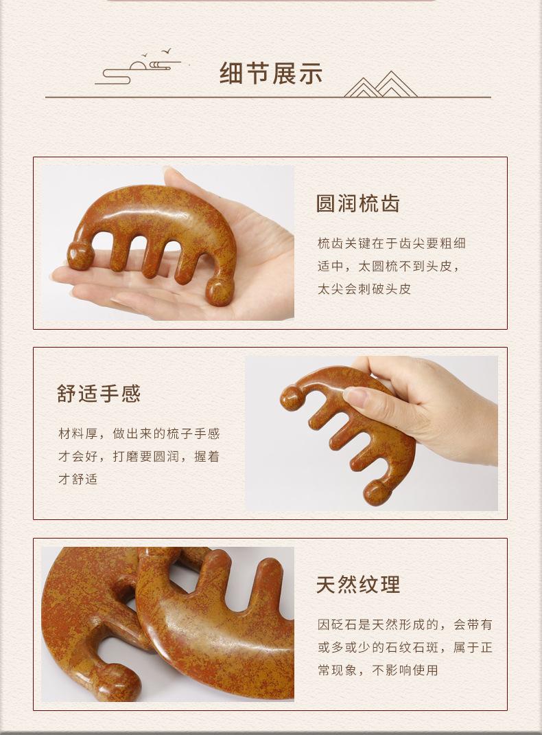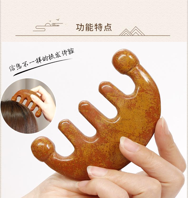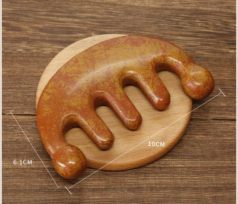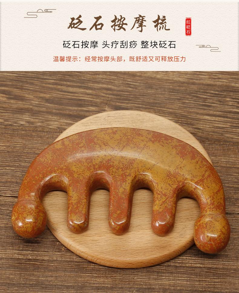Compre Pedra vermelha natural pente de cinco dentes fábrica atacado cabeça meridiano massagem pente raspagem e dragagem cabeça tratamento pente no atacado no Joom.pro