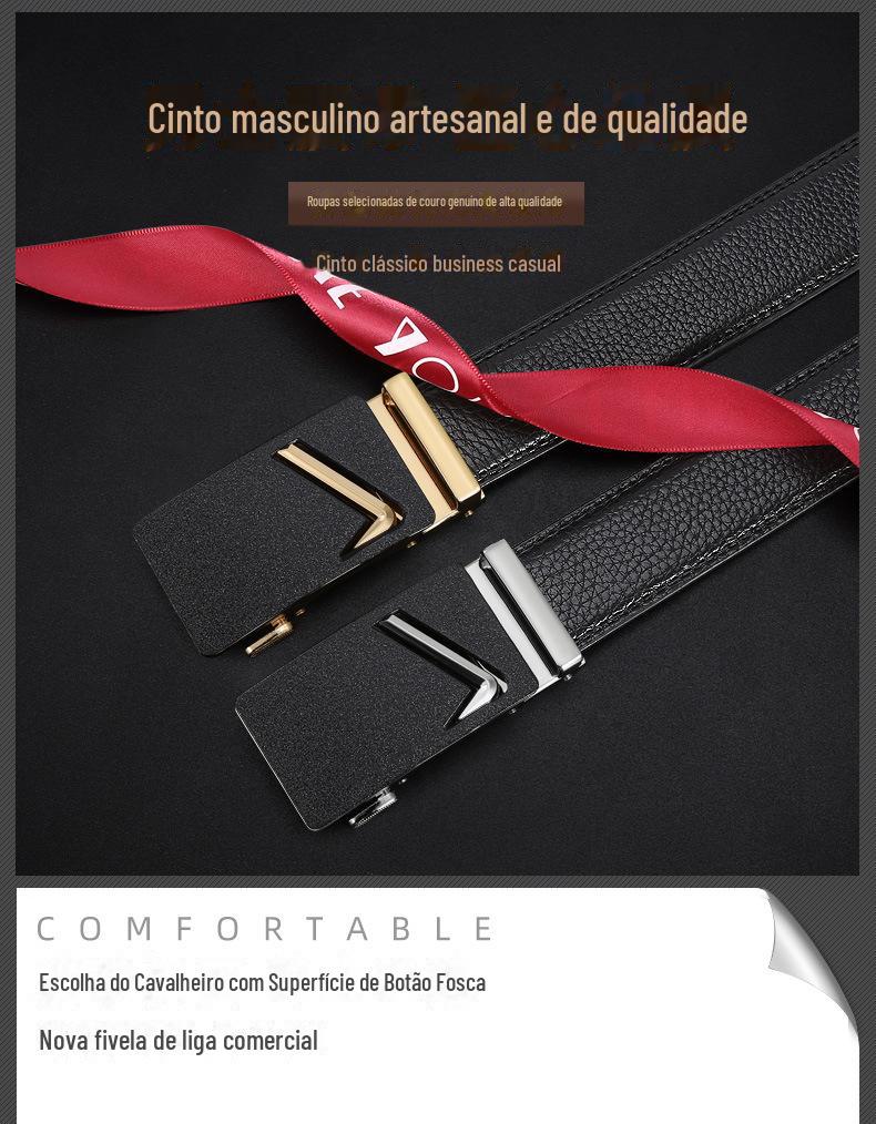 Cinturão masculino de duas camadas de liga de couro de vaca automático cinto de fivela negócios de lazer Joker carta cinto homens fabricantes atacado
