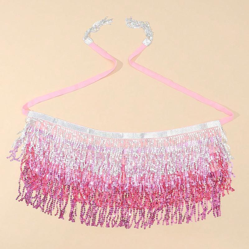 Novo Estilo Étnico Roupas de Apresentação de Dança do Ventre Lantejoulas Borla Corrente de Cintura de Miçangas Tecidas Lenço de Cintura para Apresentação de Dança Indiana