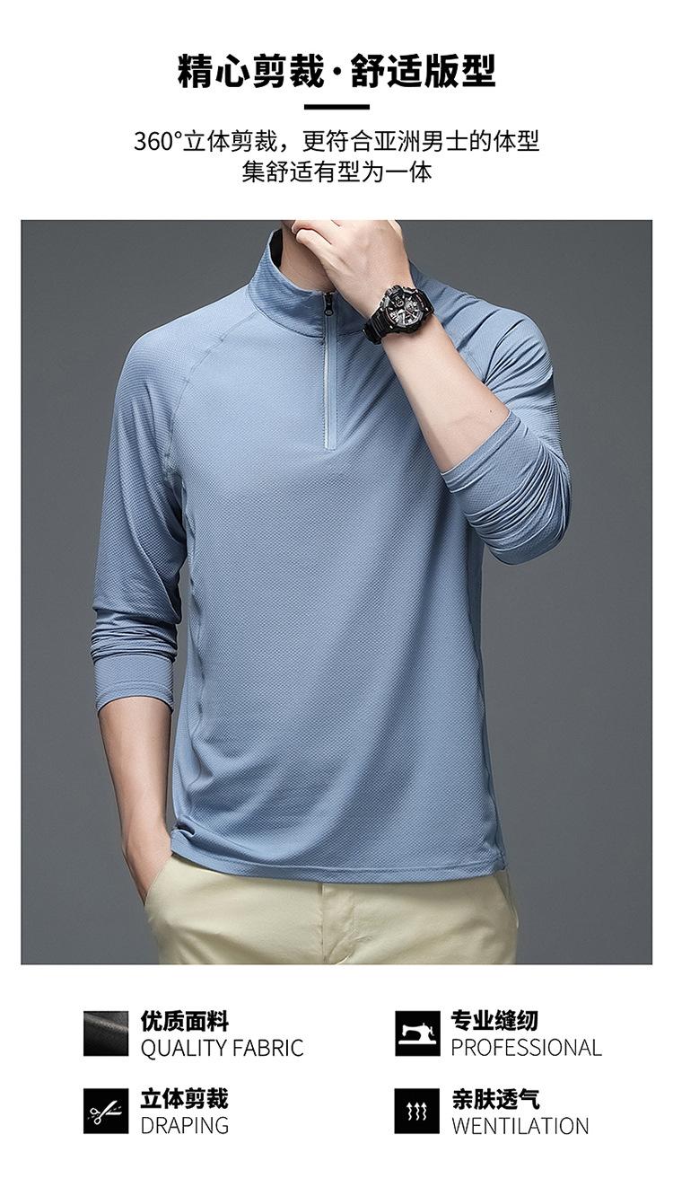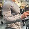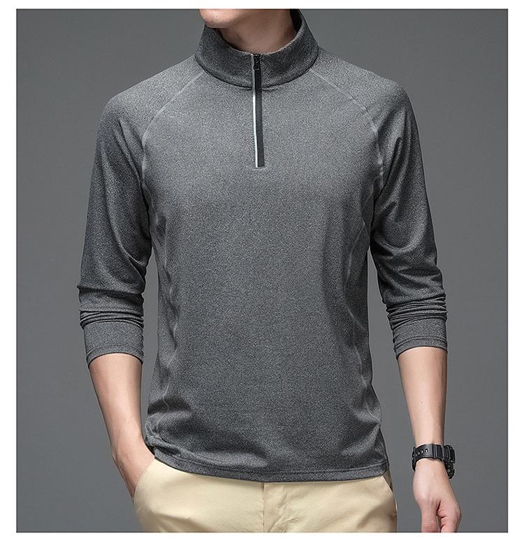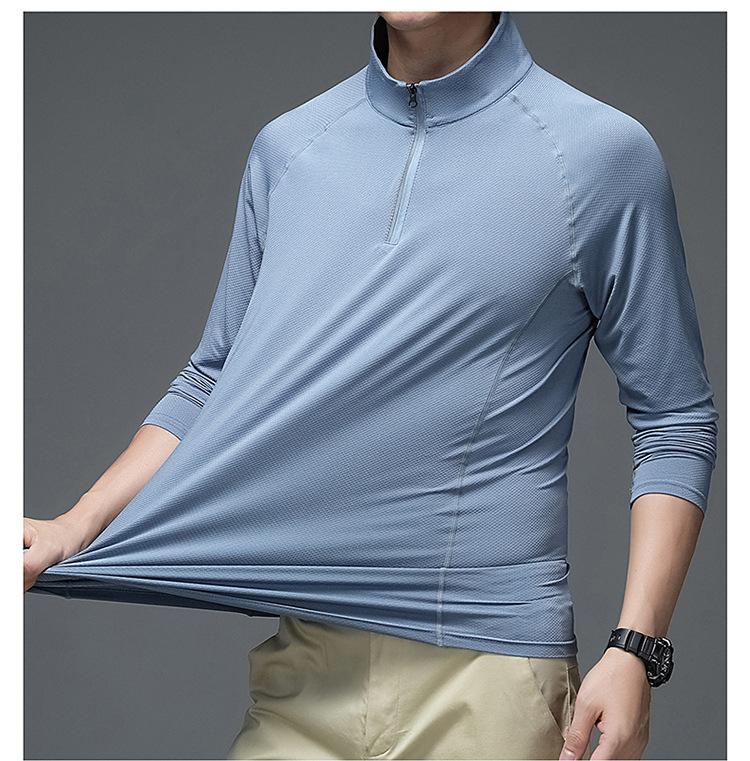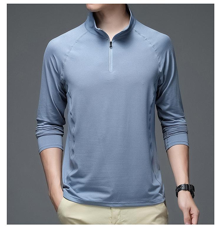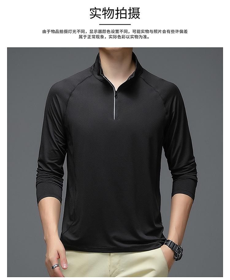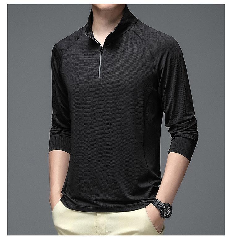 Homens manga comprida T-Shirt Collar Top Esportes Lazer Fitness Yoga Running T-Shirt Primavera Outono Moda Elástico