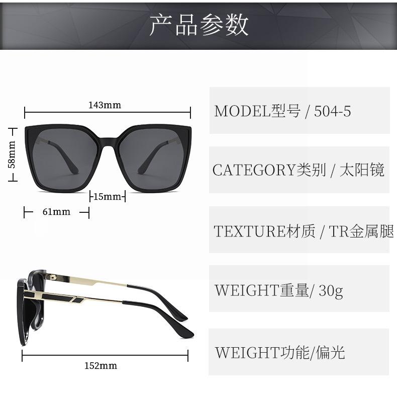 Novos óculos de sol polarizados de armação grande e fashion, óculos de sol de metal com armação TR, óculos de sol de alta sensibilidade para mulheres, atacado