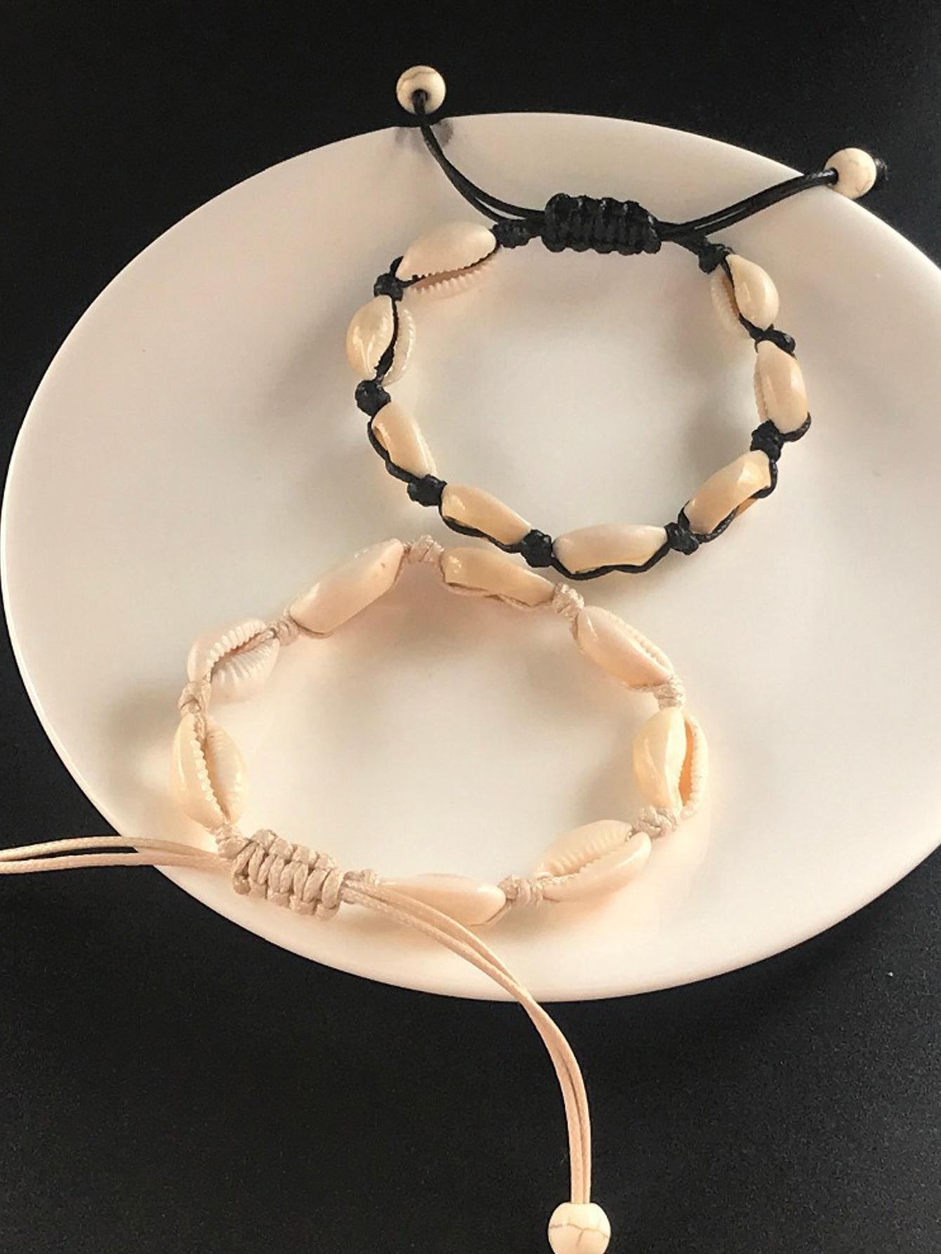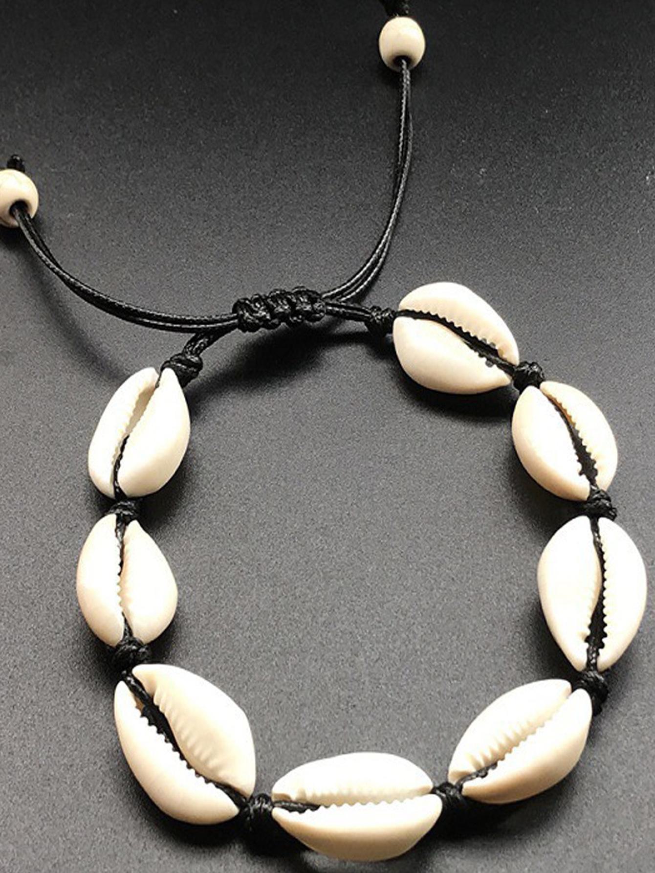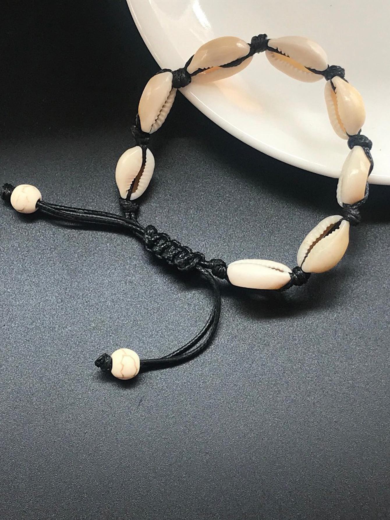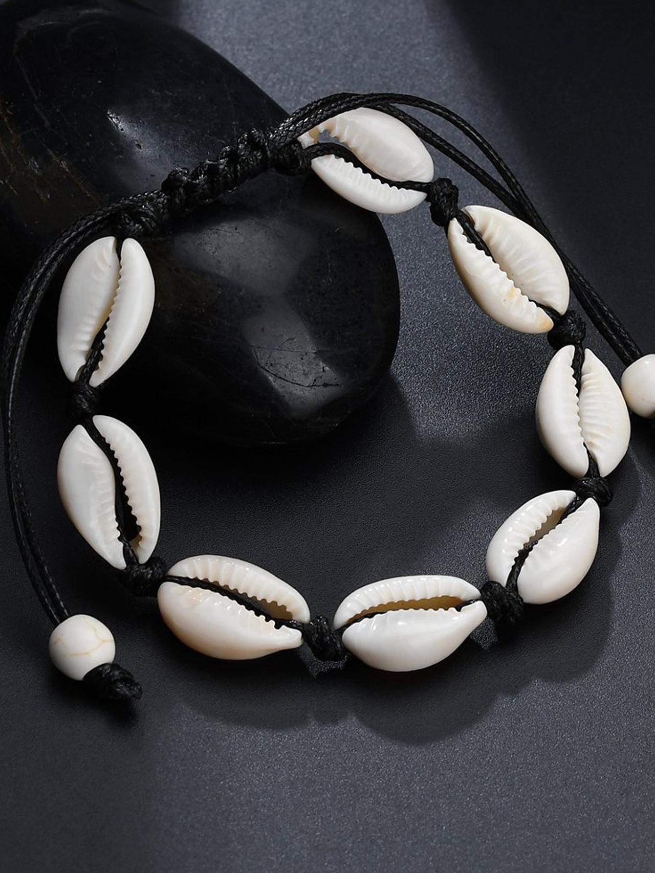 Nova Joia Transfronteiriça Europeia e Americana Personalizada Criativa Estilo Havaiano Casual Joia de Mão Pulseira Tecida à Mão com Concha Natural