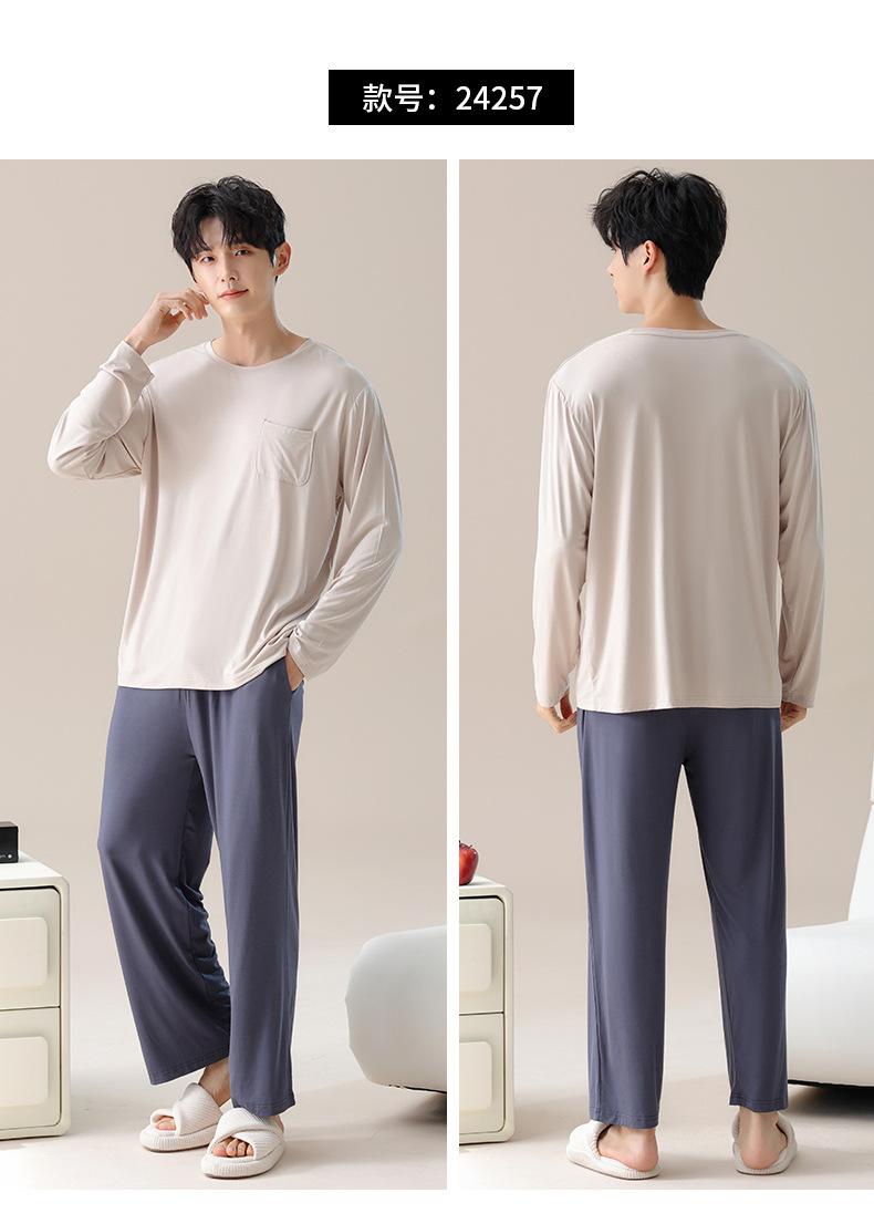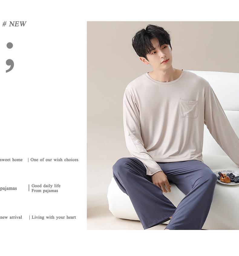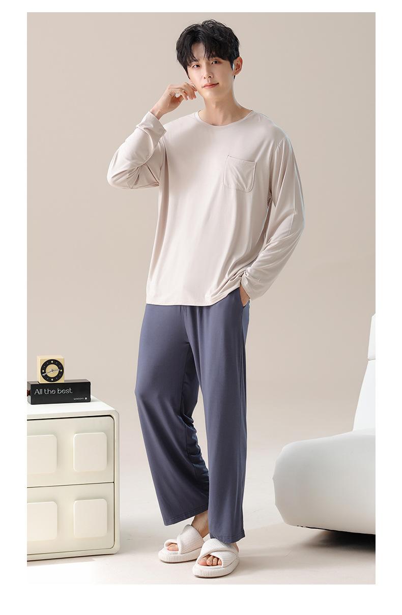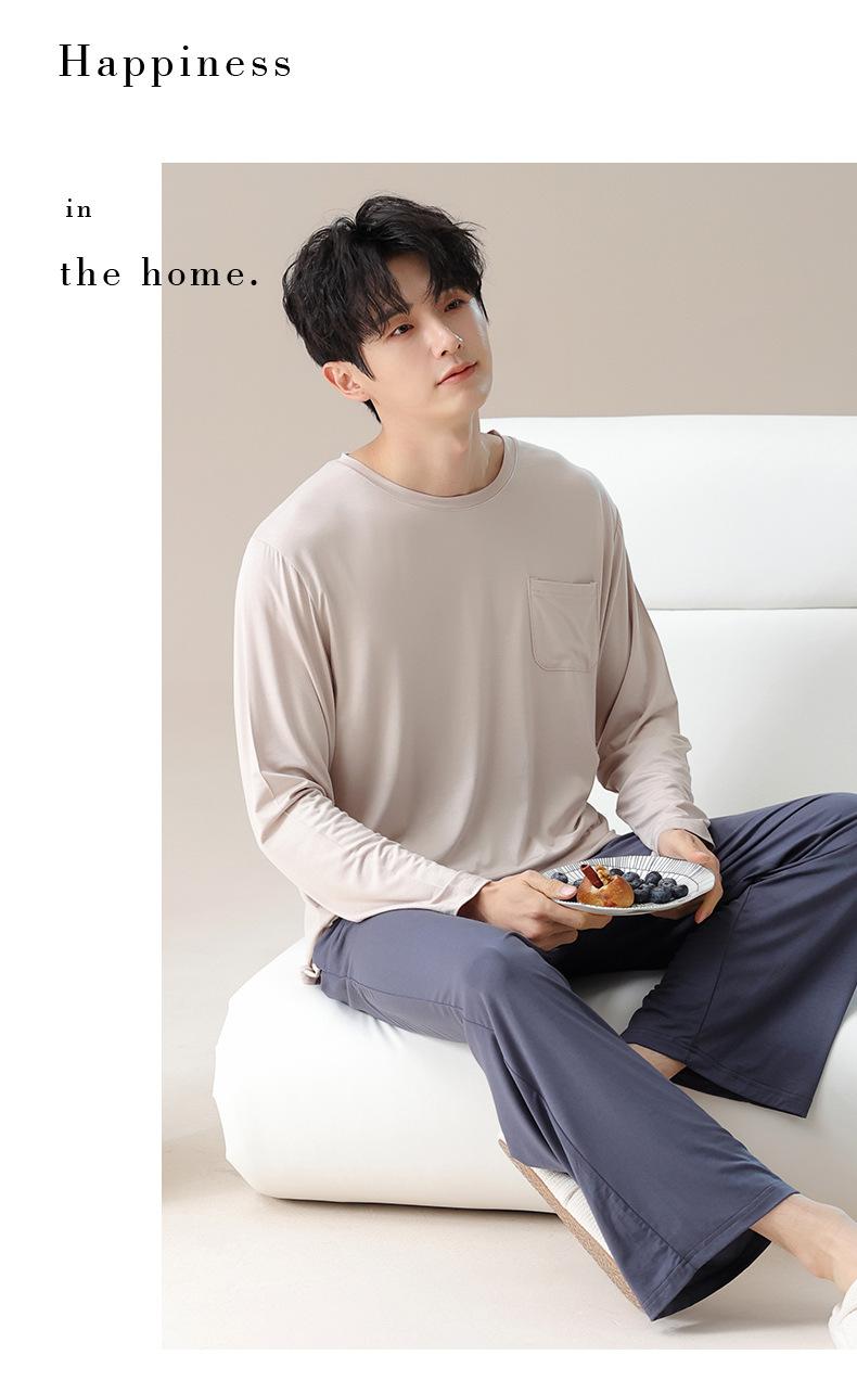 Primavera de 2025 Novo Modal Tecido de Alta Qualidade Pijama Masculino Roupas Casuais Calças de Manga Longa Roupa Exterior Casual