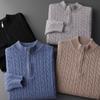 2022 Outono e Inverno Novo Suéter de Lã Masculino Semi-alto Pescoço Engrossado Jacquard Suéter Zíper Twist Flor Camisa Larga Tamanho Grande