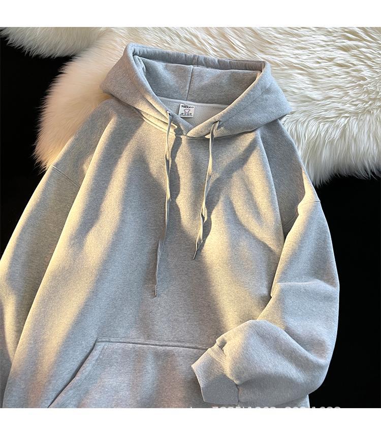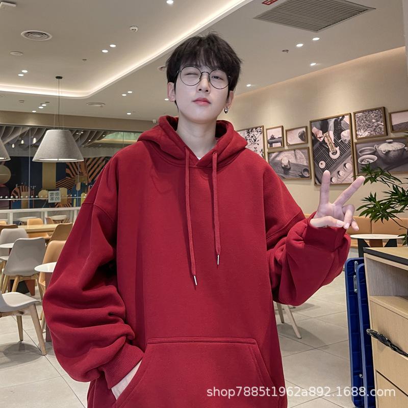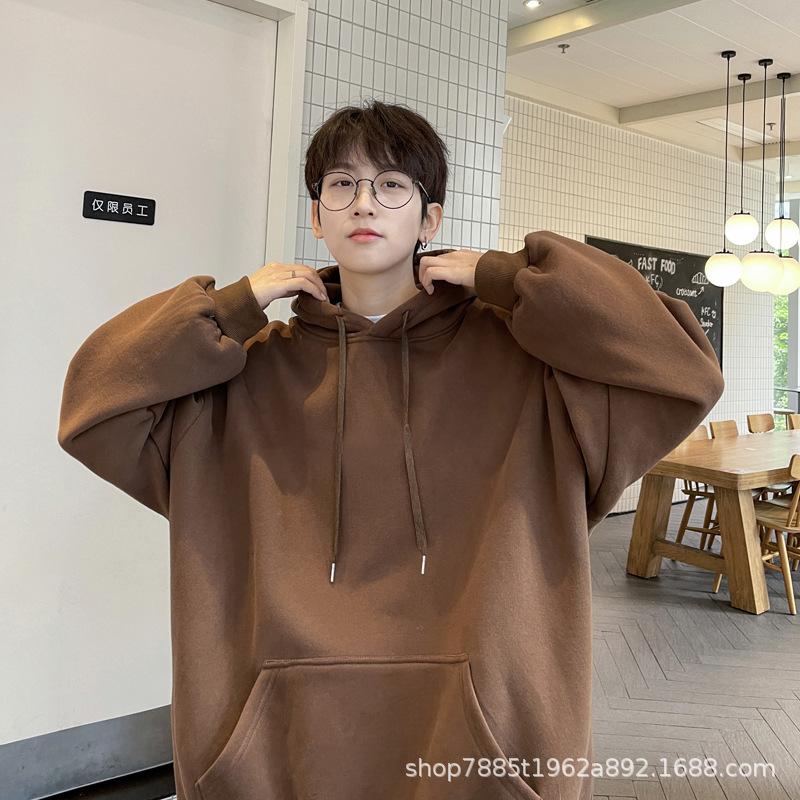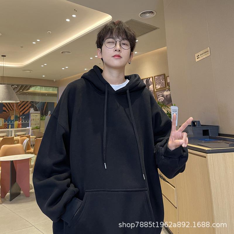 Suéter com capuz de alta qualidade para homens outono e inverno cor sólida hoodie pullover estilo coreano moderno solto casaco all-matching
