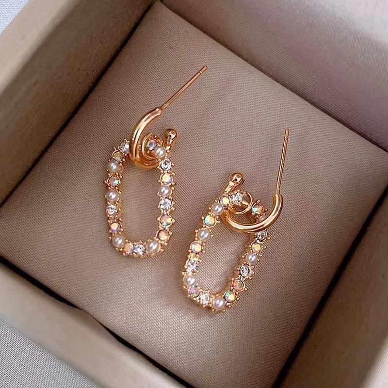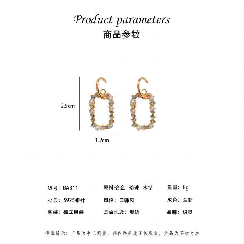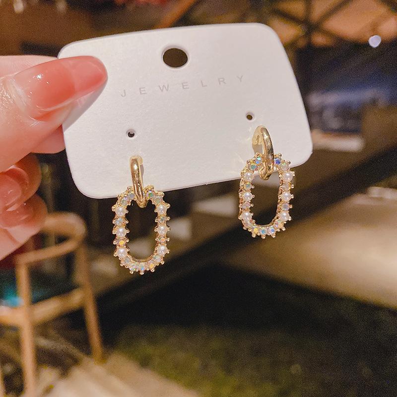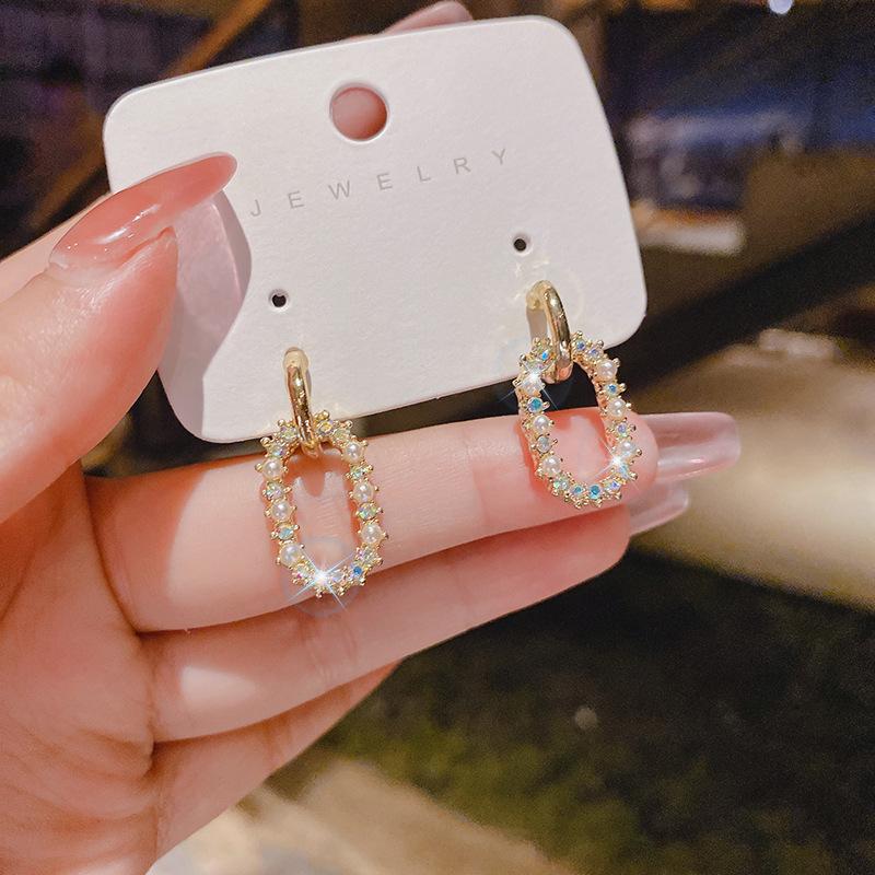 Brincos de Argola Pérola Temperamento Coreano Versátil Brincos Geométricos Brincos Simples Estilo Frio para Mulheres