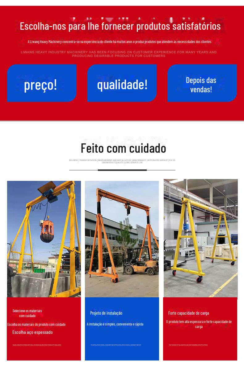 Guindaste Pórtico Móvel 1 Ton 2t 3 Ton Guindaste Pórtico de Elevação Pequeno 5 Ton Empurrado à Mão Móvel Sem Trilhos Controle Remoto Sem Fio