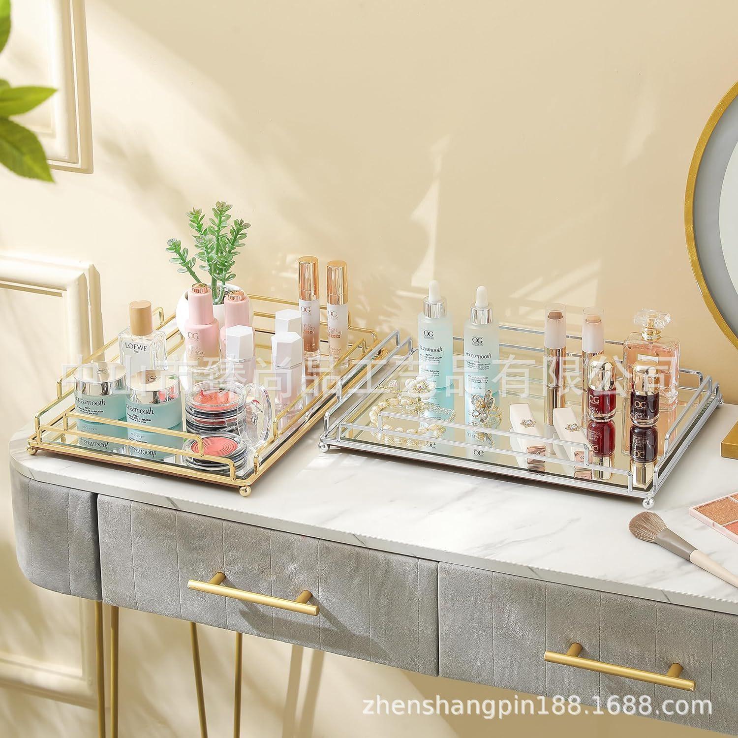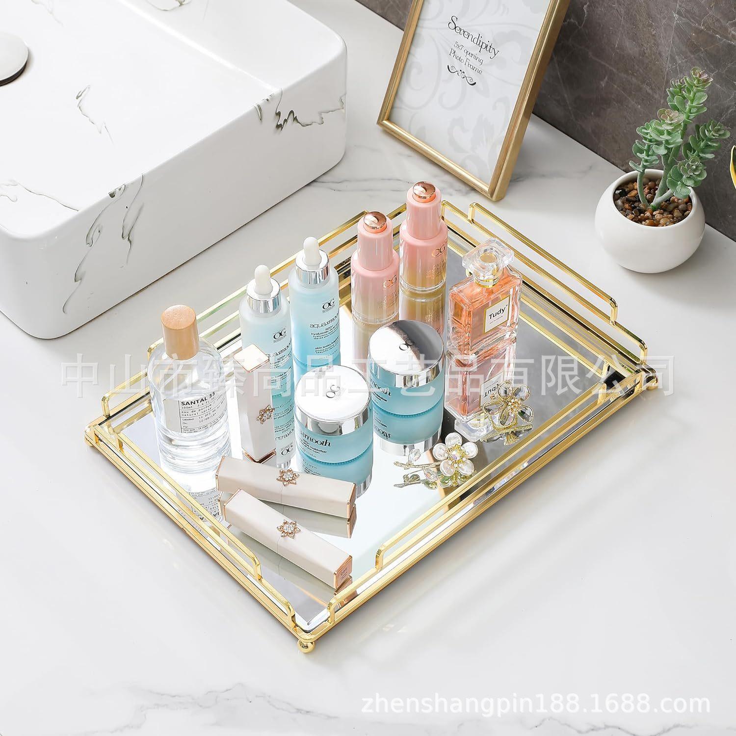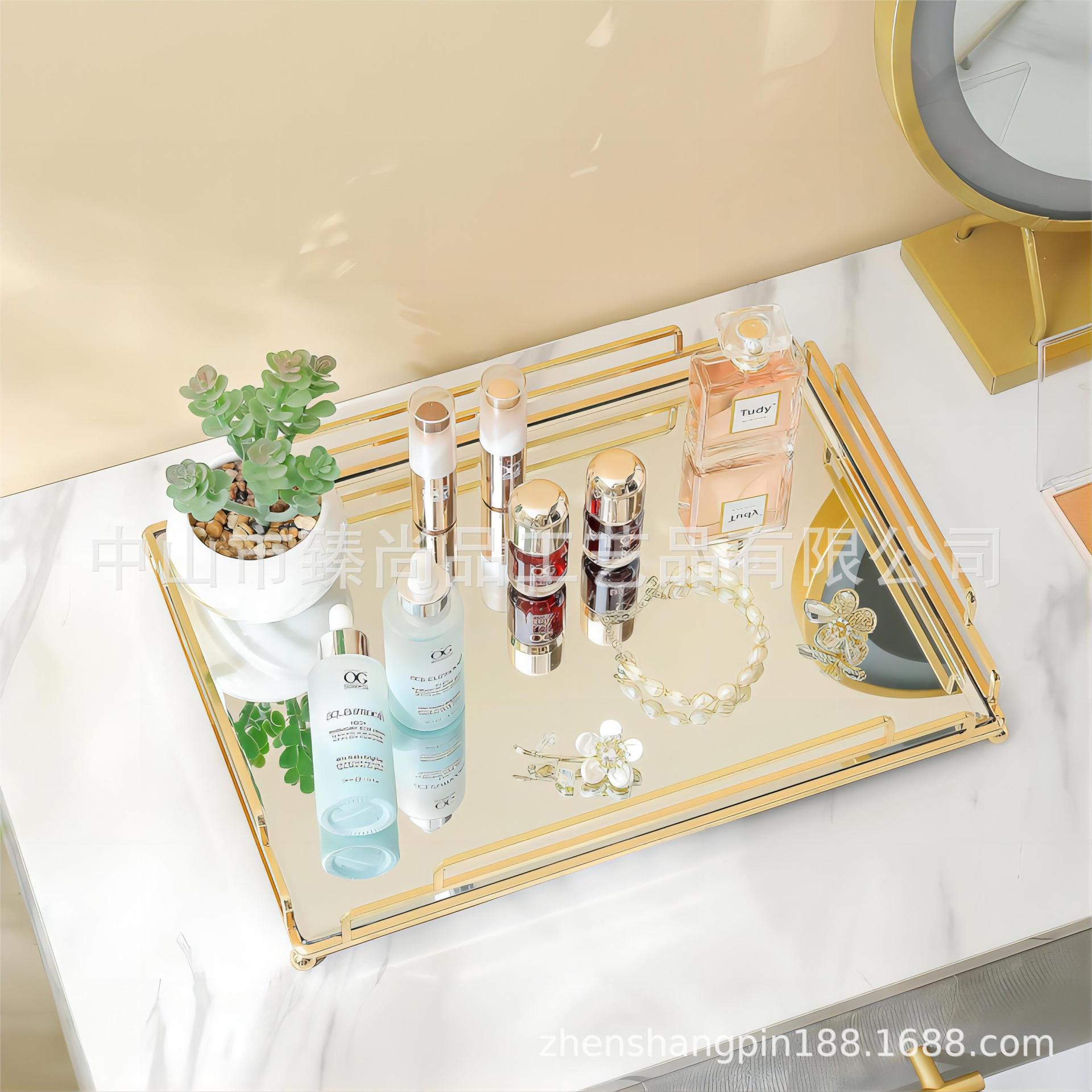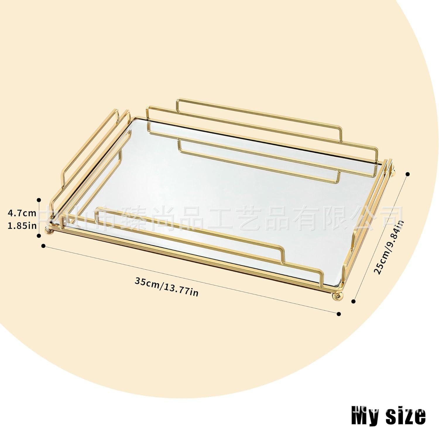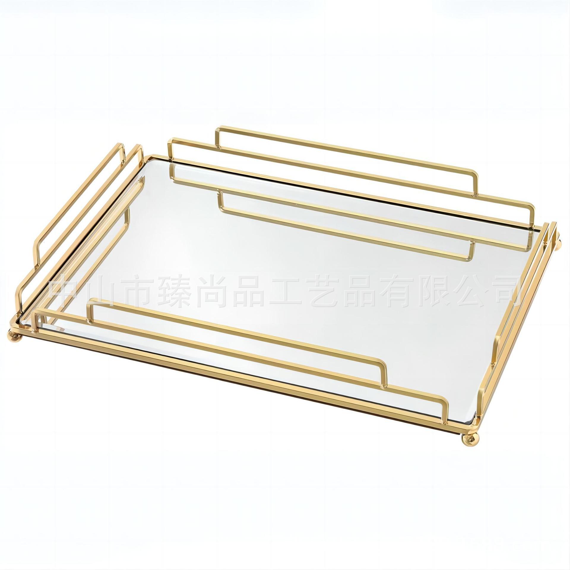 Luz nórdica estilo de luxo espelho placa de vidro de armazenamento de metal Bandeja Ornamentos Ornamento da sala de estar doméstico Prato de frutas decorativo