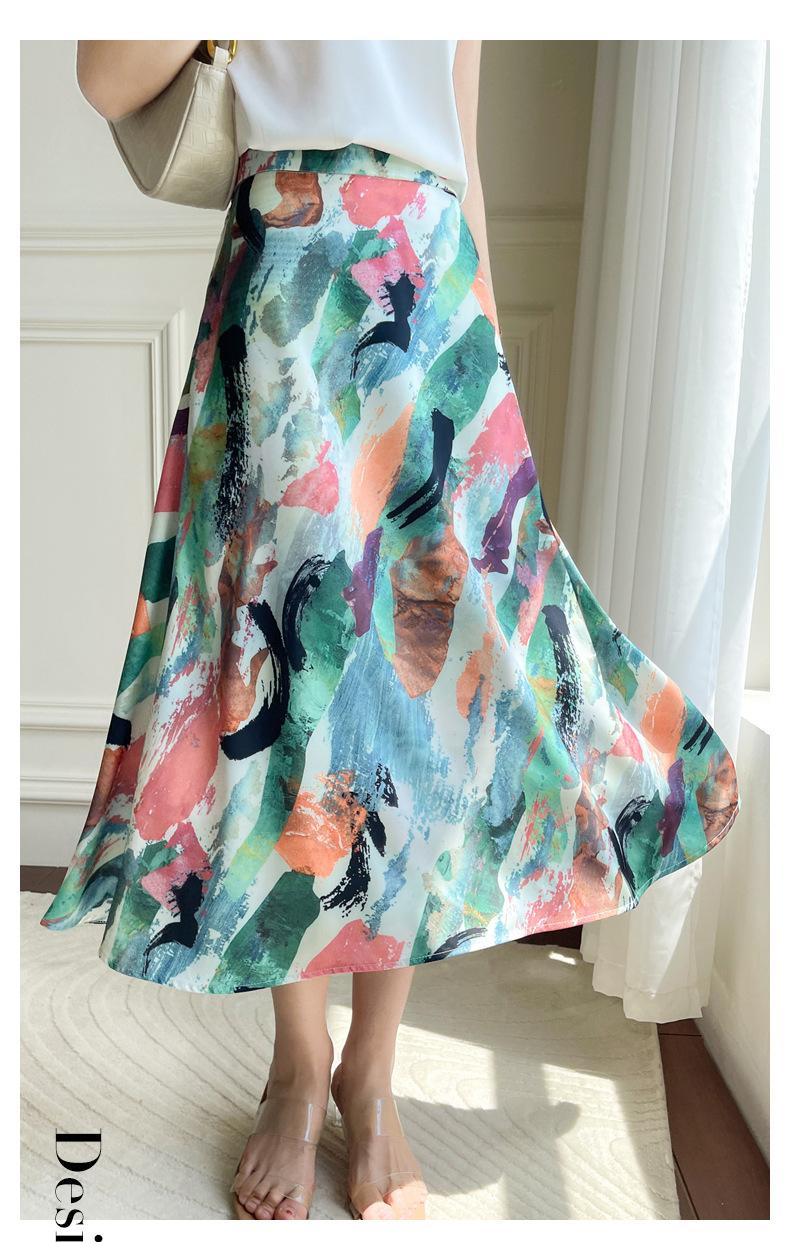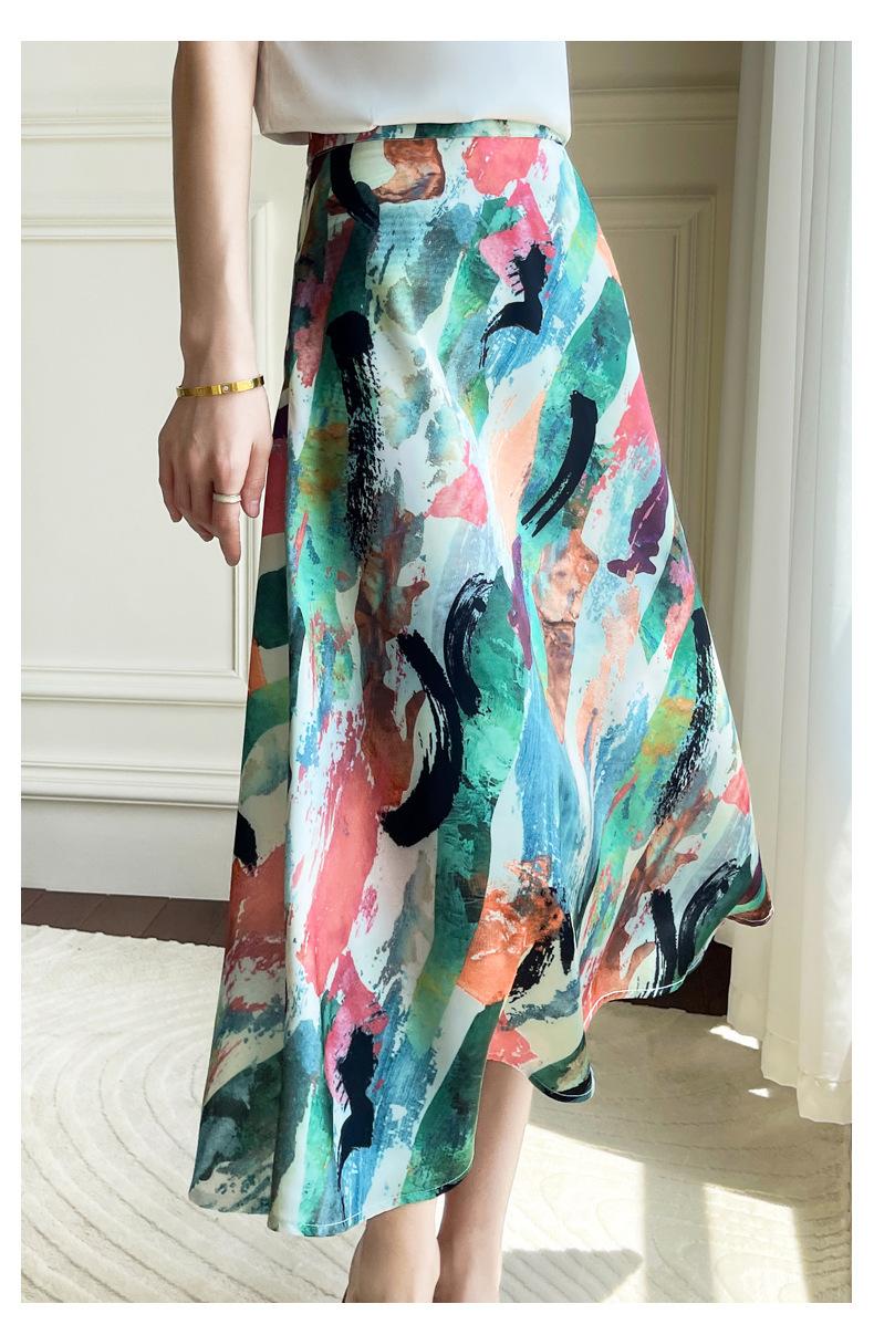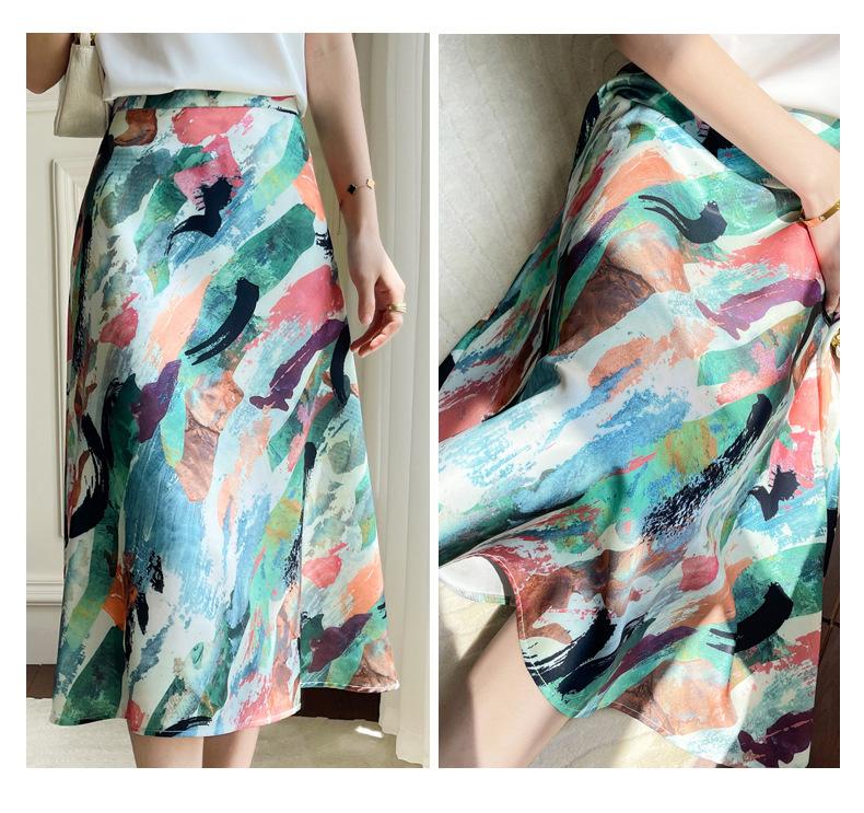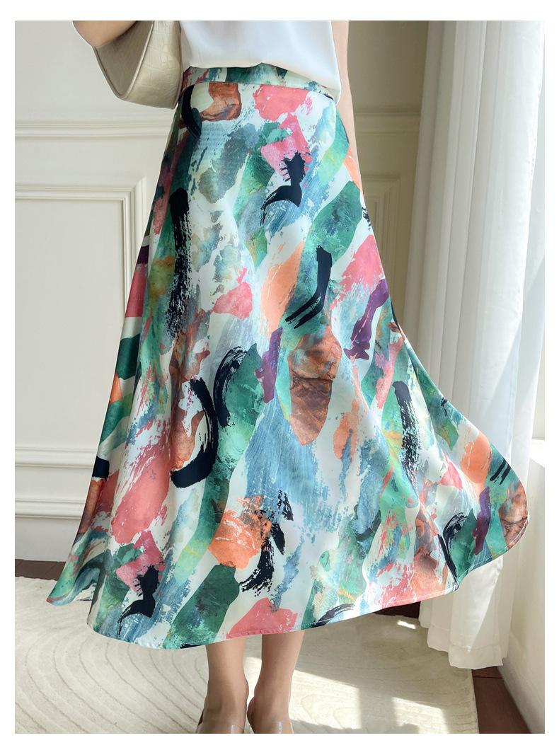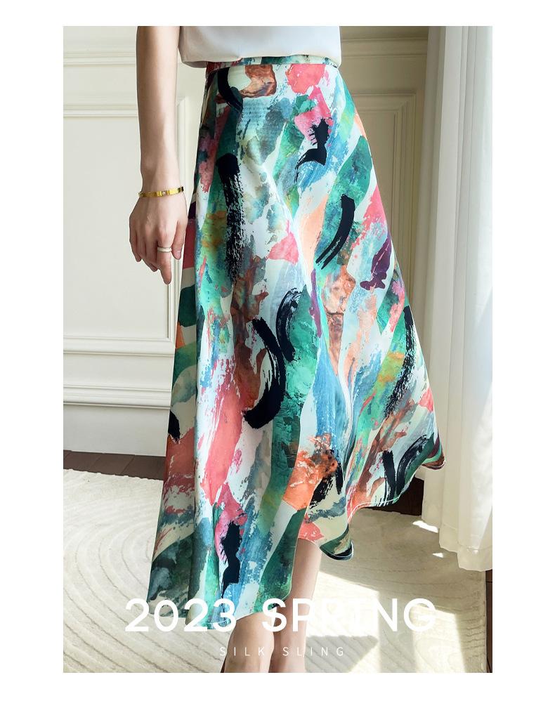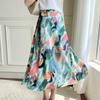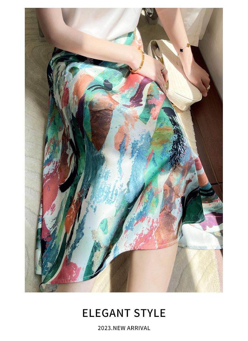 Saia estampada pintada 2023 primavera e verão novo vestido elegante de cintura alta e slim em linha A comprimento médio da moda