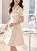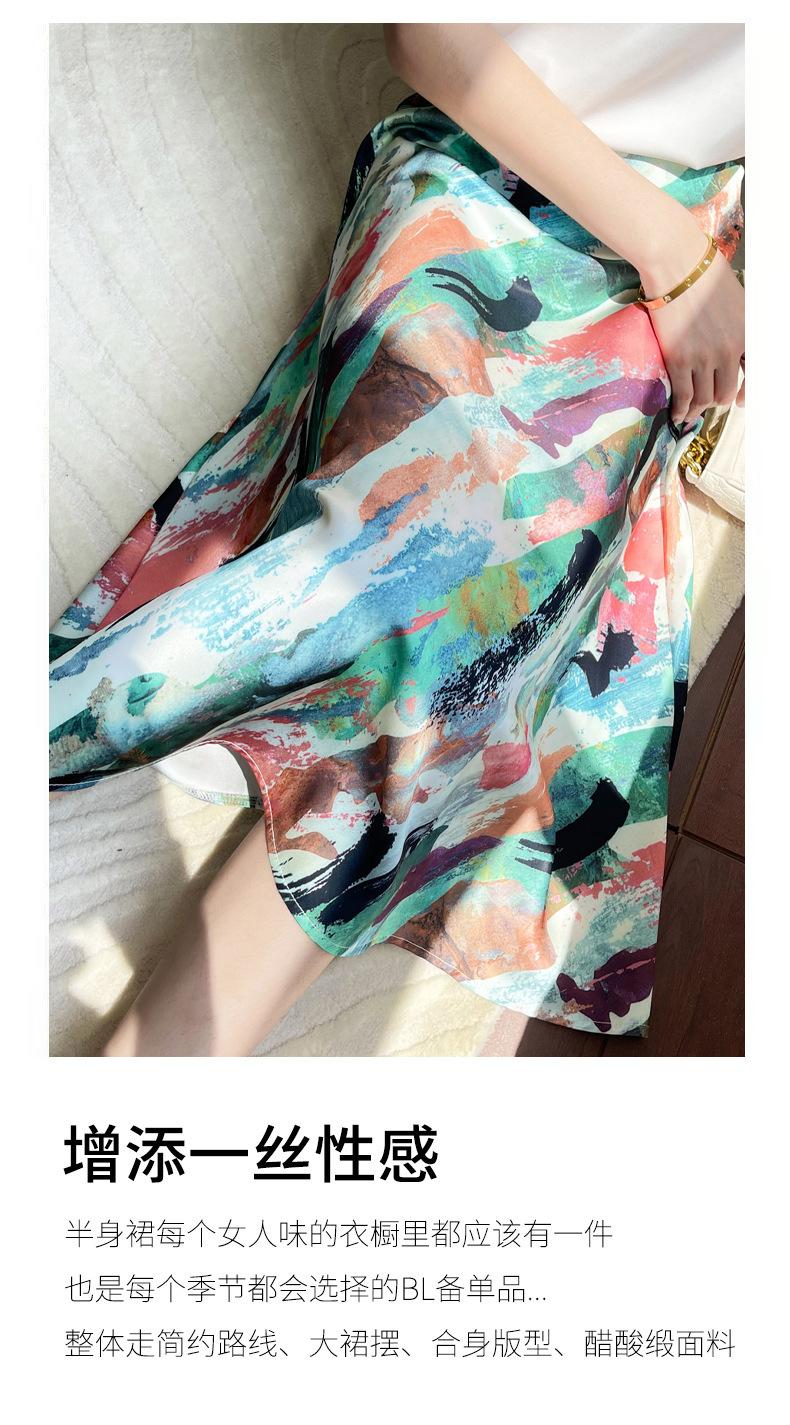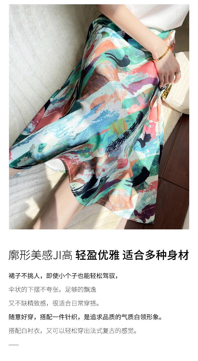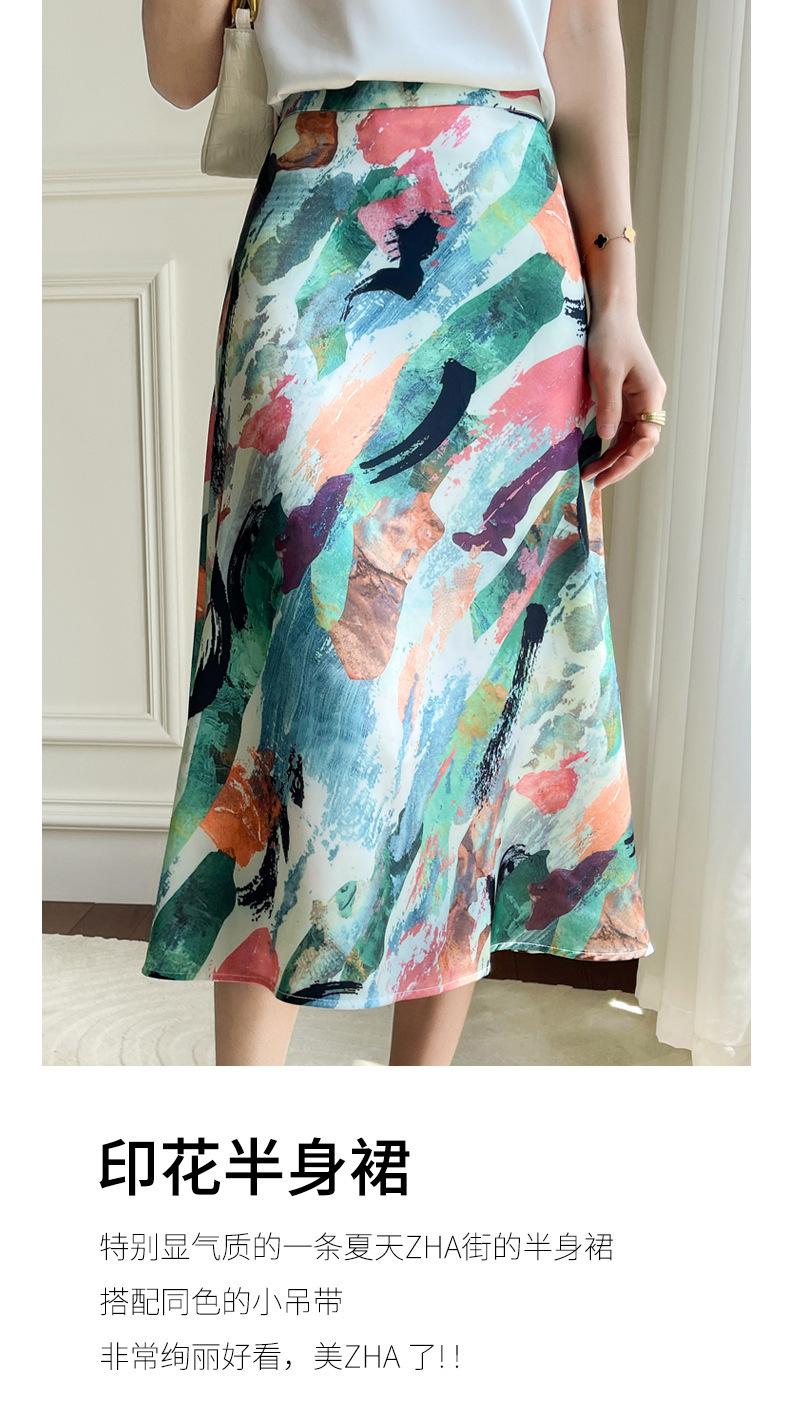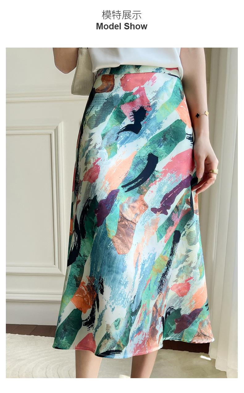 Saia estampada pintada 2023 primavera e verão novo vestido elegante de cintura alta e slim em linha A comprimento médio da moda