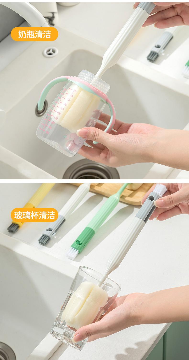 Escova de copo multi-funcional quatro em um cabo longo escova de limpeza removível marca Yanyu comum garrafa de leite limpeza doméstica escova de copo