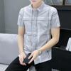 Camisa Masculina de Verão de Manga Curta Estilo Coreano Slim Moderna Bonita Camisa Masculina Listrada Casual Negócios Manga Média Camisa Polegada