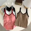 Verão 2024 pequeno V-neck camisole mulheres slim fit externo peitoral almofada uma peça interior sólido colete feminino