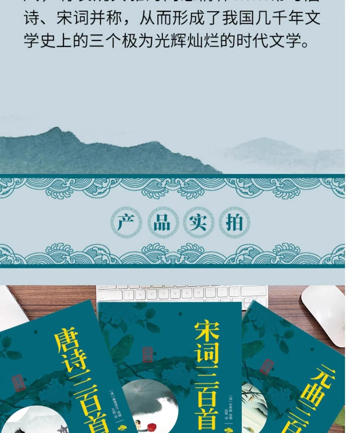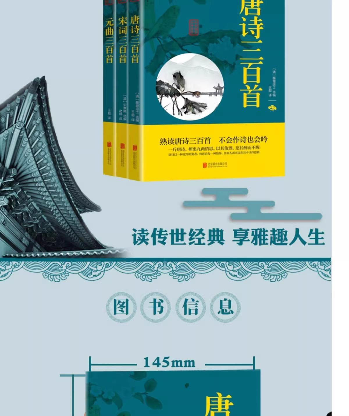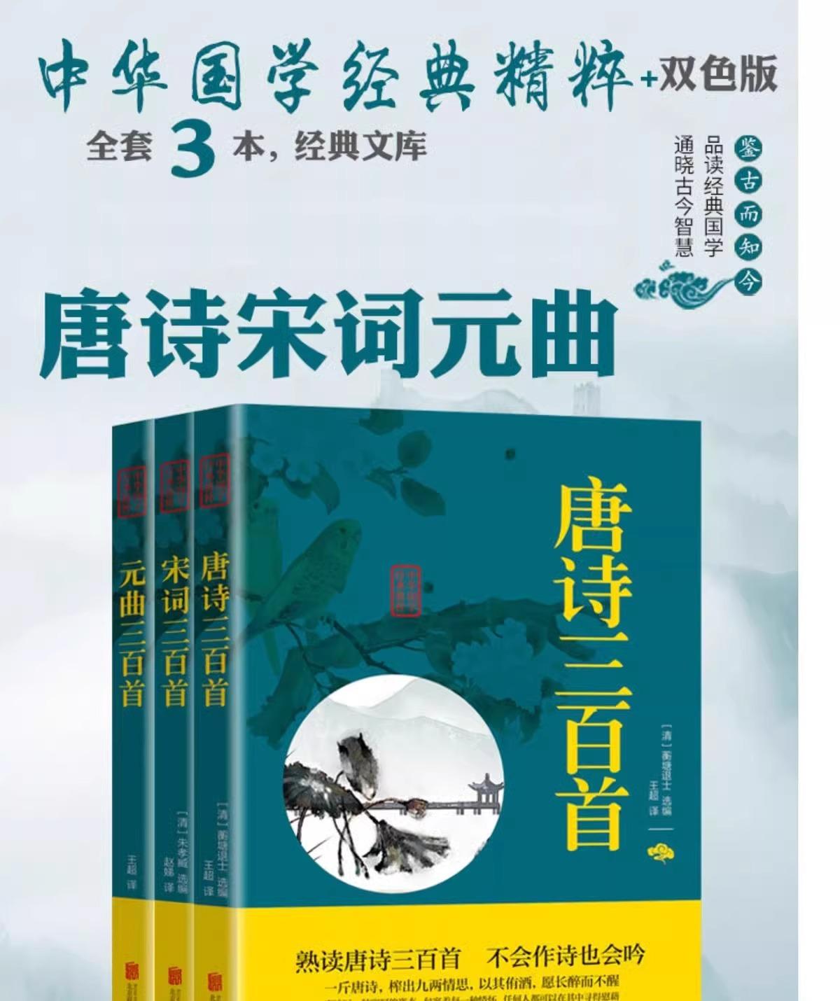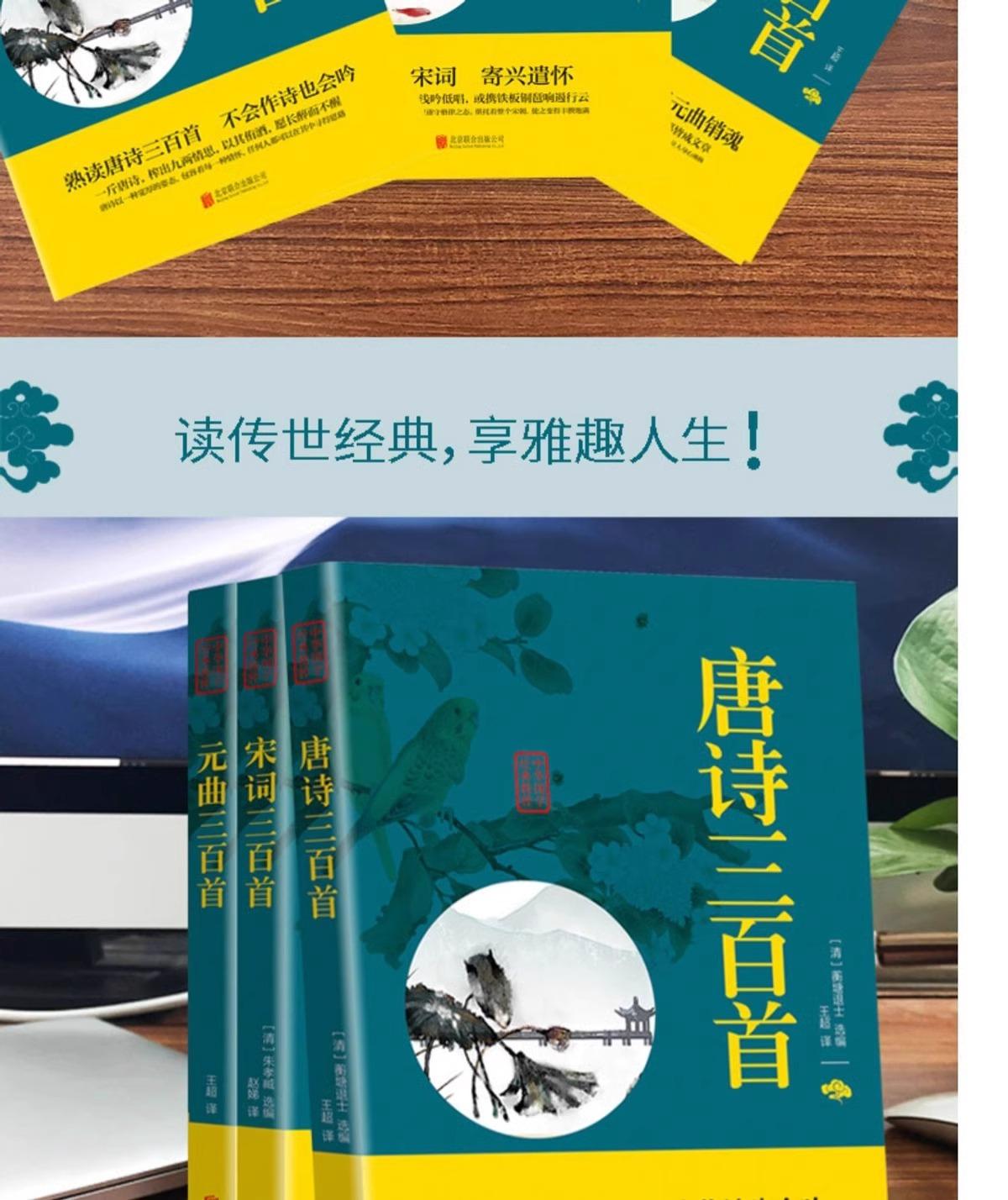 Todos os 3 volumes de Tang Poems, Song Ci, Yuan Qu, 300 Genuine Original Chinese Ancient Poetry Conference, Livro de Canções e Poemas