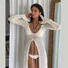 Estilo Europeu e Americano 2024 Nova Blusa de Praia Slim-fit Tricotado Oco Biquíni Protetor Solar Camisa Vestido de Praia de Férias