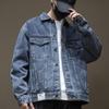 Jaqueta Jeans Xadrez Preto Cinza Forrada com Lã para Primavera e Outono Jaqueta Casual Marca de Moda Juvenil Jaqueta de Trabalho