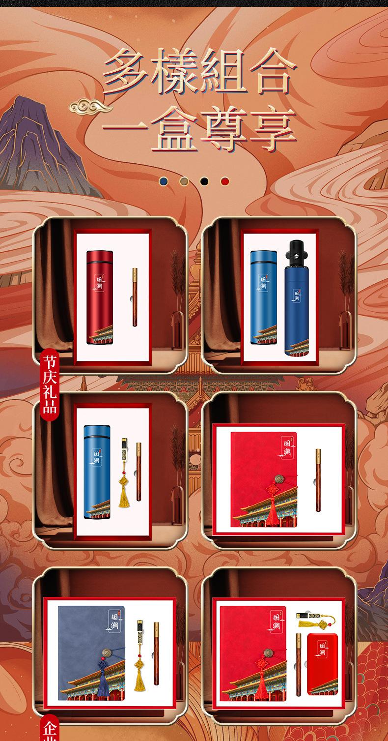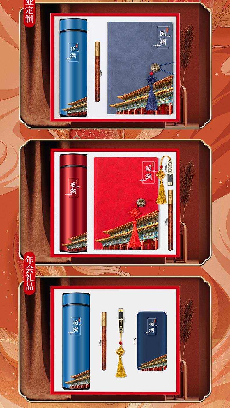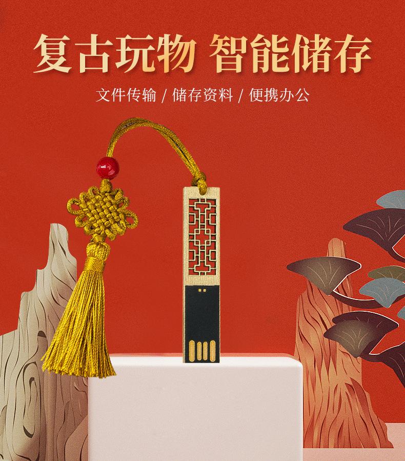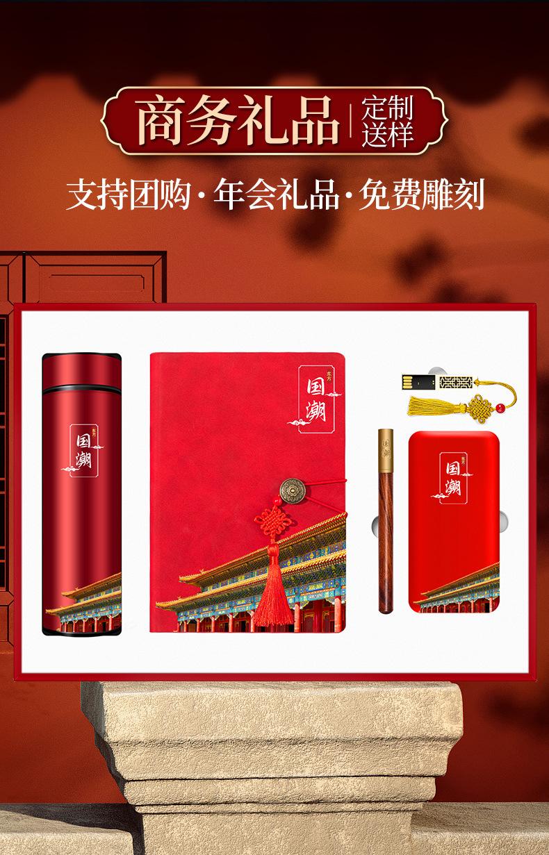 Forbidden City [retro oil edge this temperature control cup wooden pen 16G window flower U disk four-wire power supply] red five-piece set