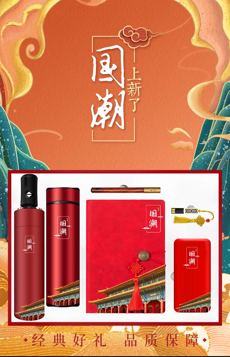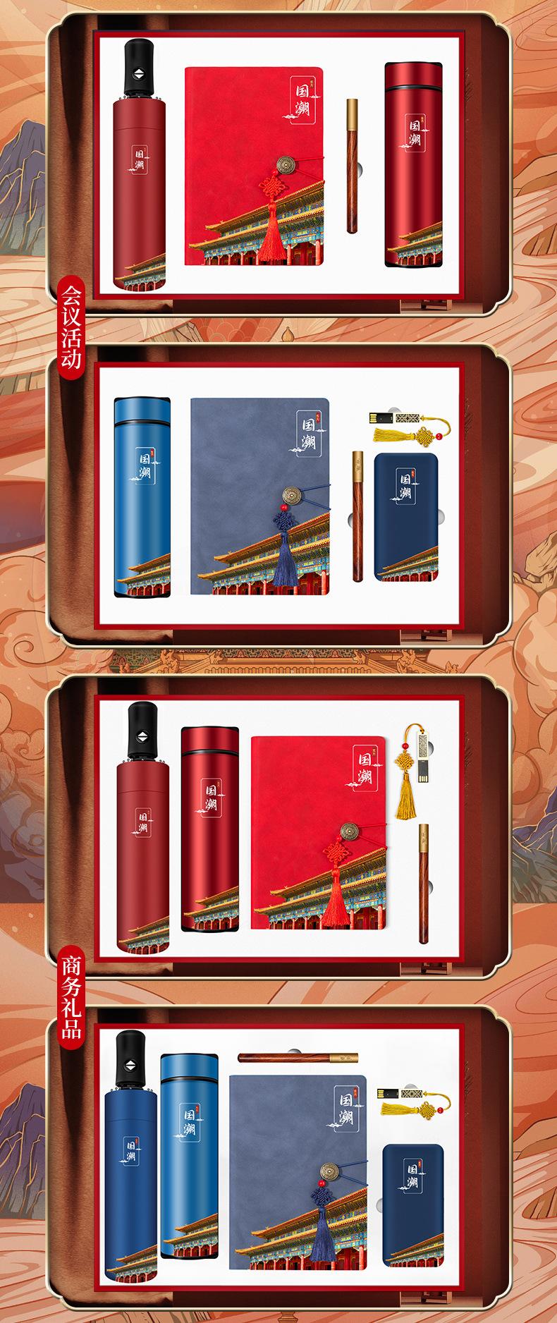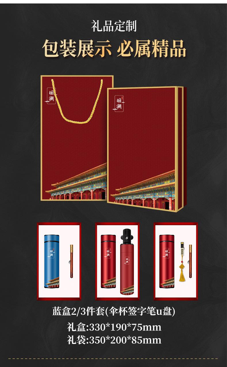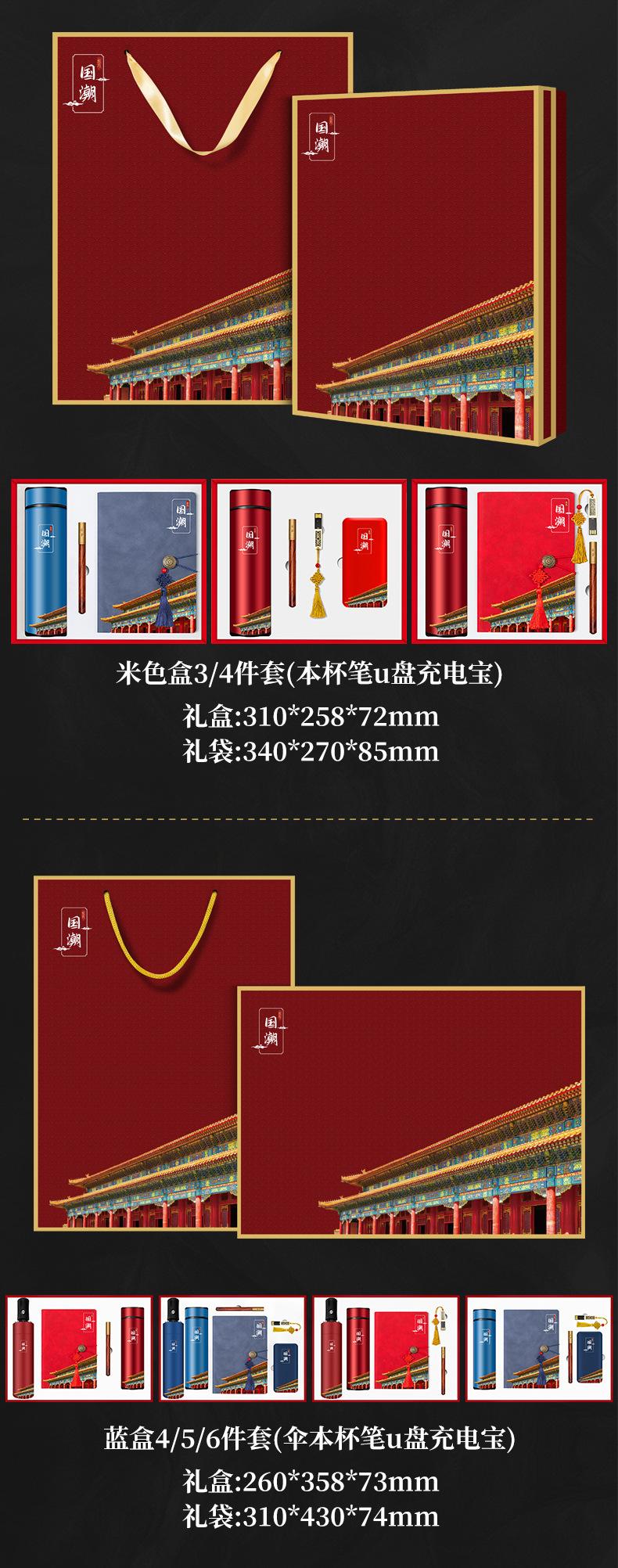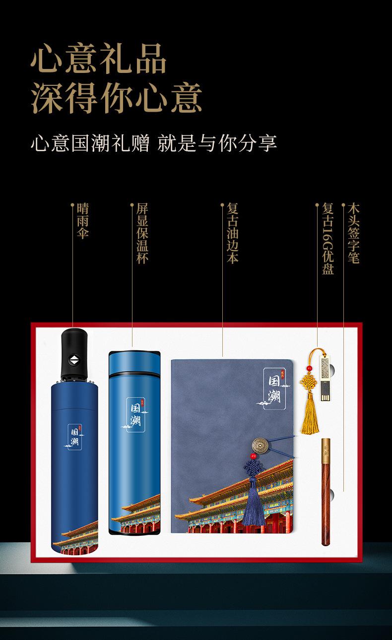 Forbidden City [retro oil edge this temperature control cup wooden pen 16G window flower U disk four-wire power umbrella] blue six-piece set