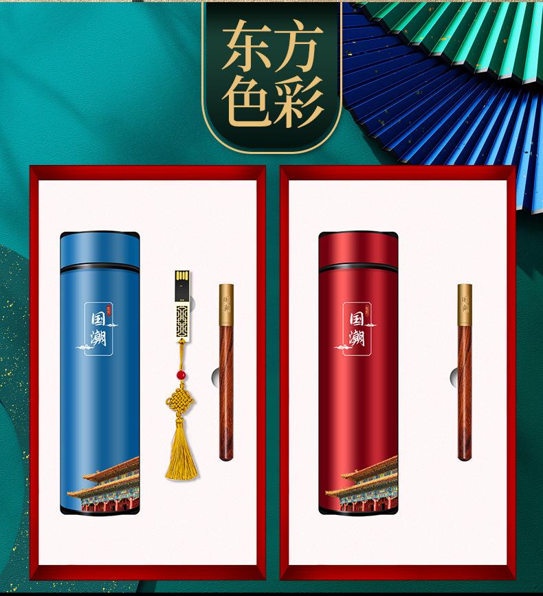 Forbidden City [retro oil edge this temperature control cup wooden pen 16G window flower U disk four-wire power supply] blue five-piece set