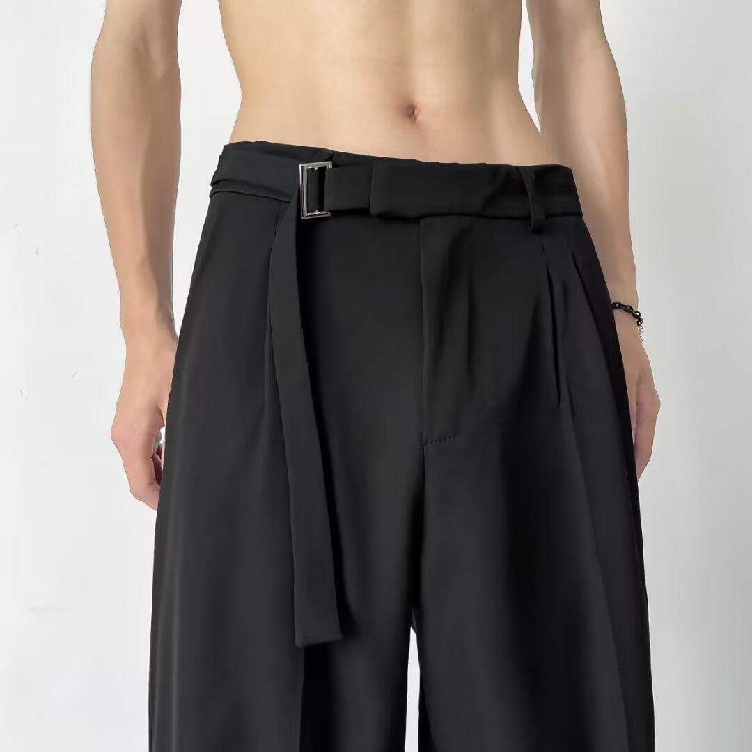 Calças de seda de gelo para meninos verão fino dape casual calça reta high street plumpies bonito preto de pernas largas calças