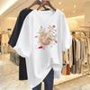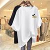 2024 Verão Nova Algodão Manga Curta T-shirt Feminino Simples Gola Redonda Estampado Comprimento Médio Plus Size Top Solto Meia Manga