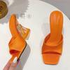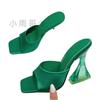 Comércio Exterior Europeu e Americano Praça Cabeça Salto Alto Moda chinelos Mulheres salto de cristal elegante pano Boca de peixe Sandálias chinelos