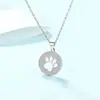 Colar de Prata de Lei S925 Estilo Europeu e Americano Transfronteiriço com Estampa de Pata de Gato para Mulheres, Pingente Vazio com Estampa de Pata de Cachorro com Diamantes Completos, Corrente Personalizada para Clavícula