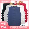 Verão fino Cardigan plus size Homens Tang-style Vest Vest Old Man Sweatshirt Retro Buckle Estilo Chinês Magua Zen