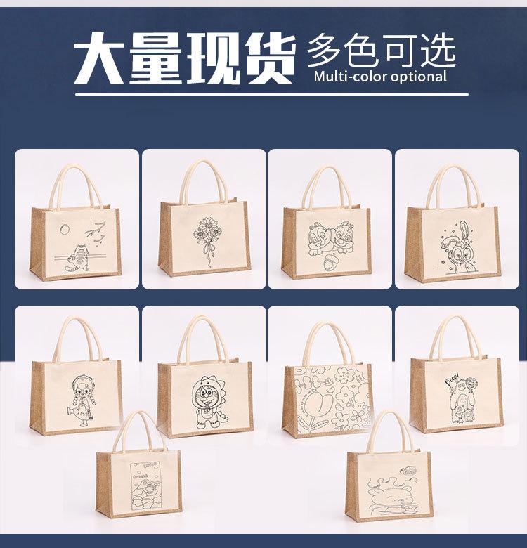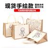 Presente pintado à mão moda all-match saco de linho vintage atacado juta portátil tridimensional saco de compras imprimível LOGOTIPO