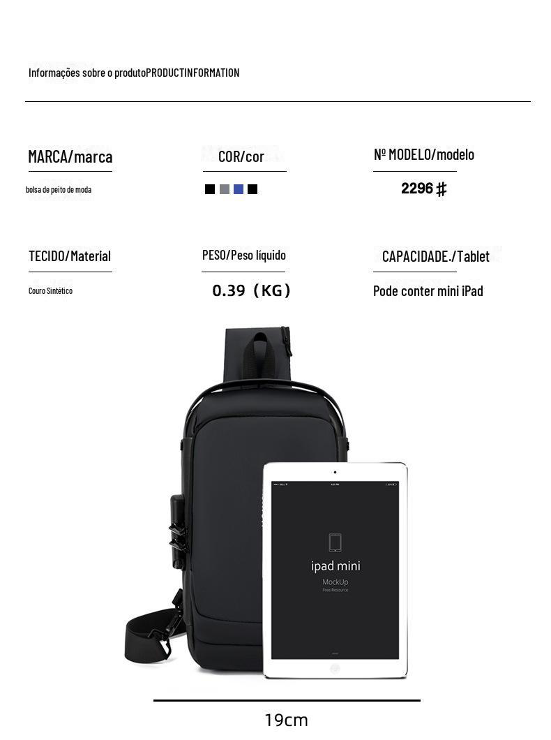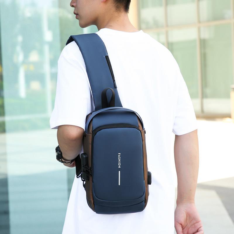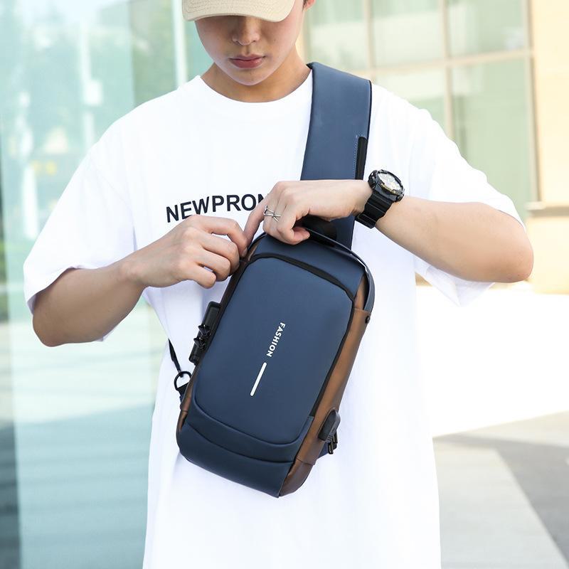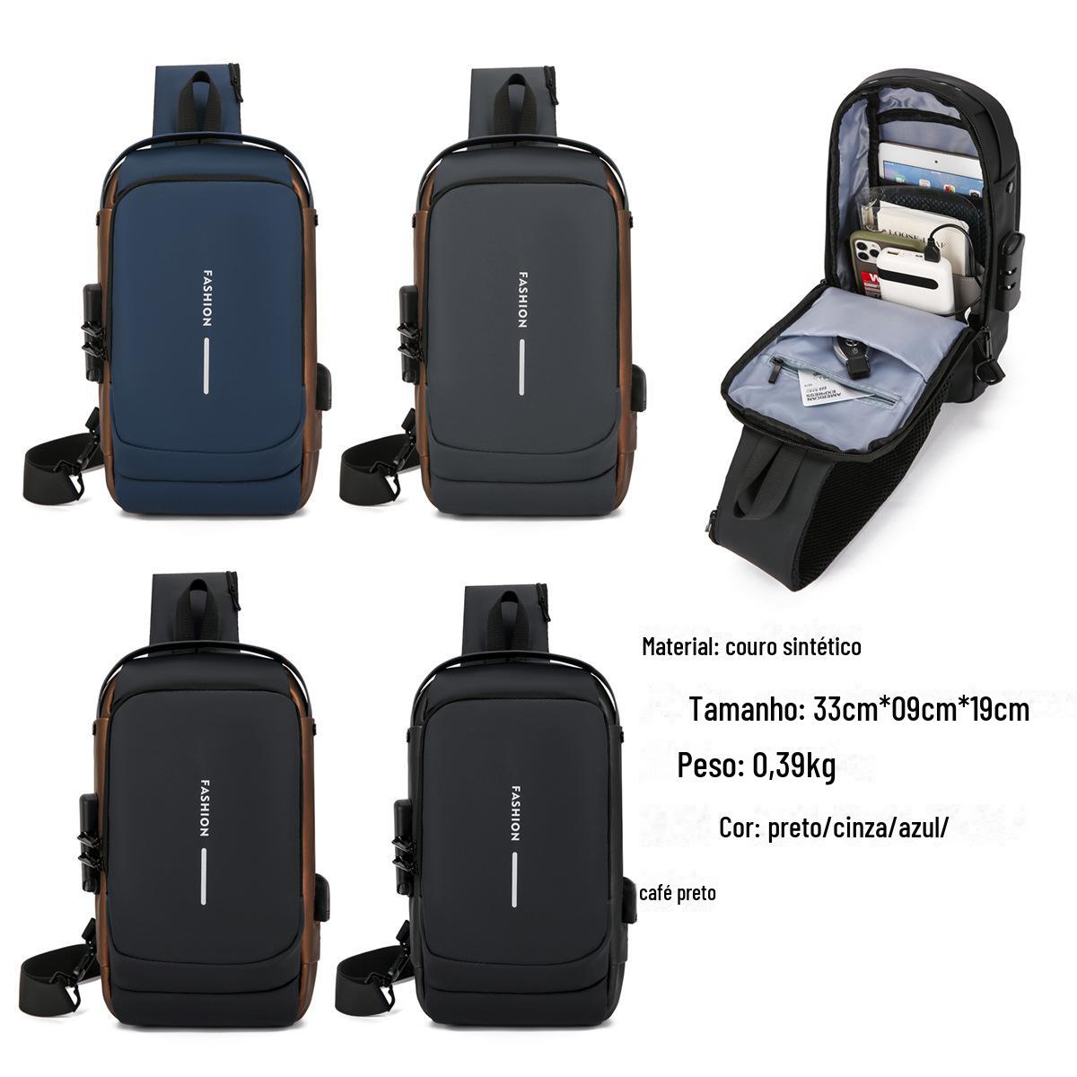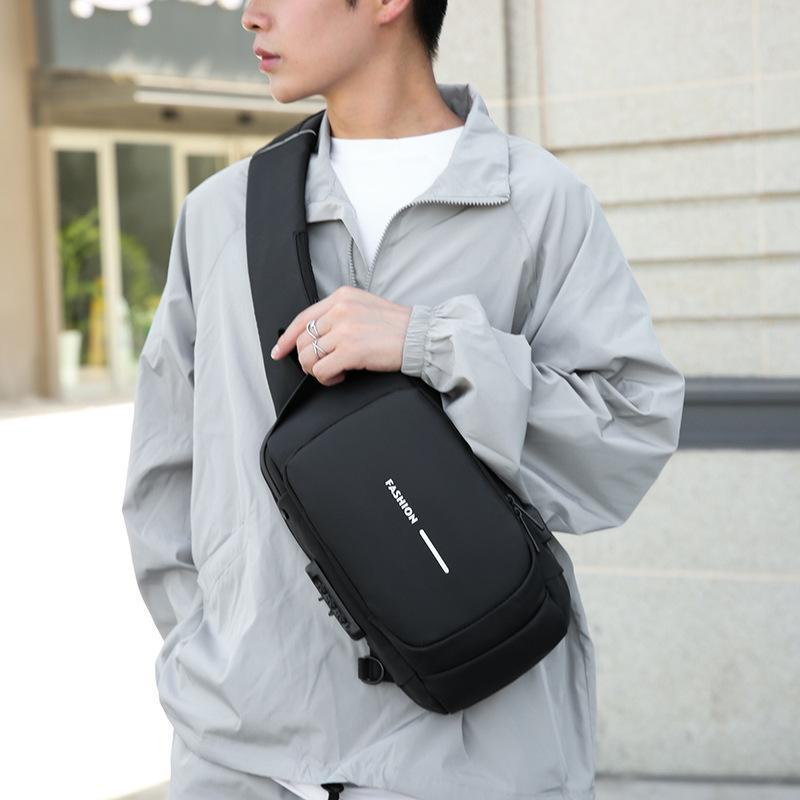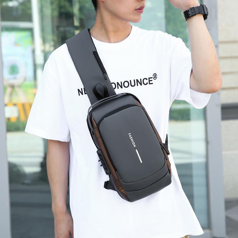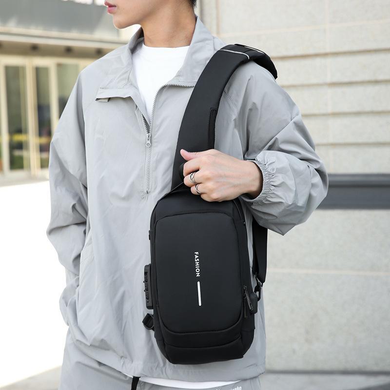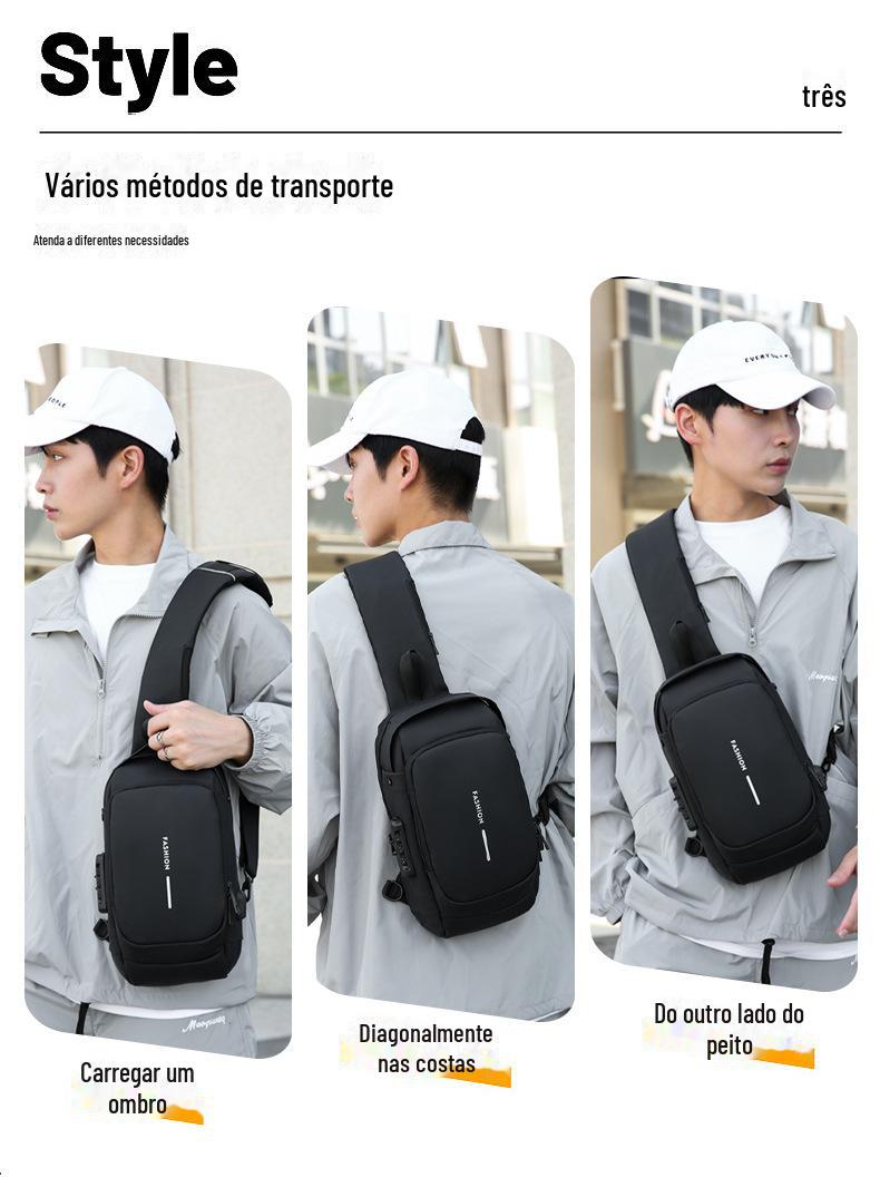 Bolsa Masculina Transfronteiriça para Motocicleta com Senha Antifurto Bolsa de Peito Bolsa Masculina Bolsa de Ombro Bolsa Esportiva de Cintura Bolsa Transversal Multifuncional Leve e Moderna