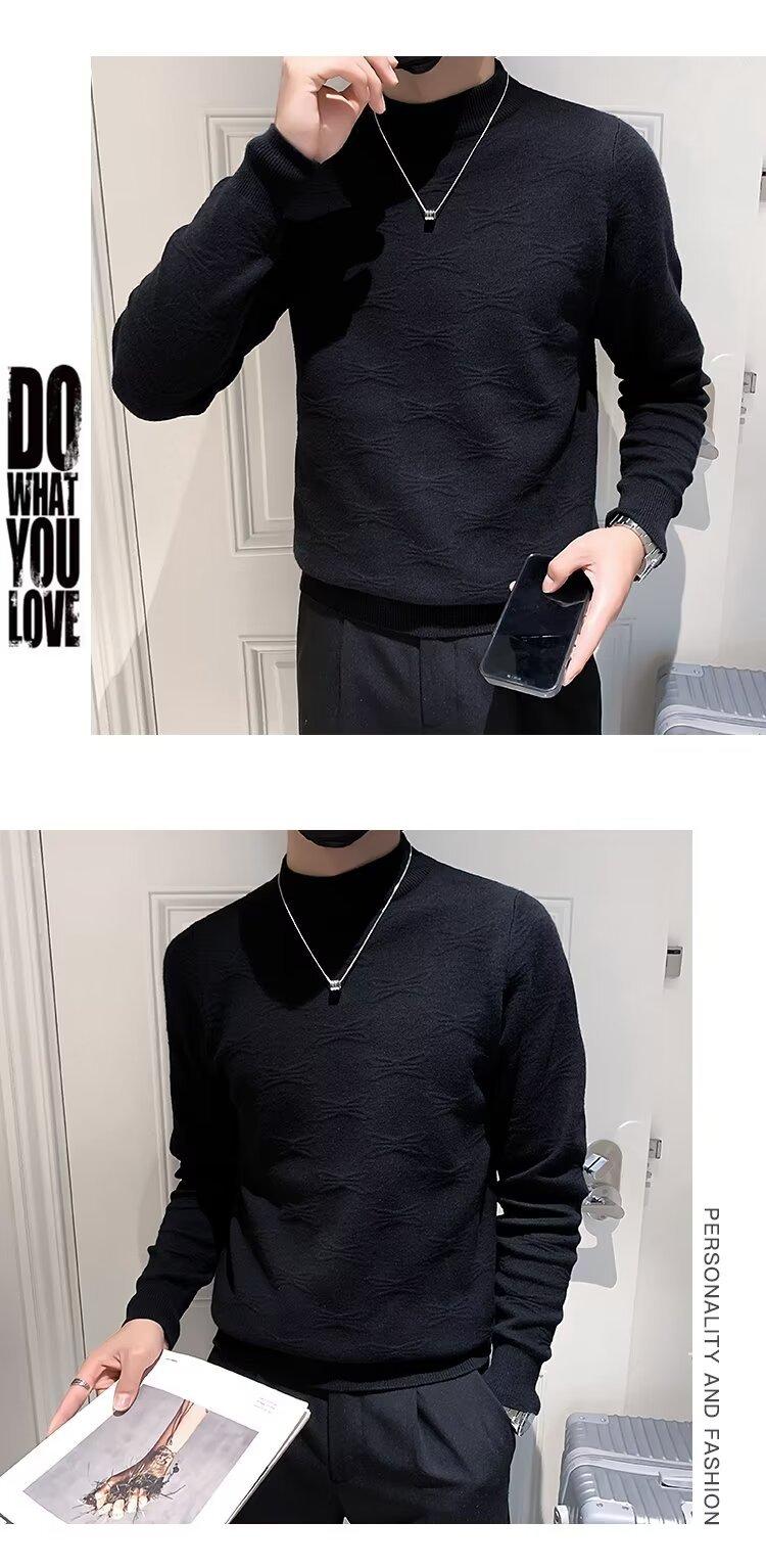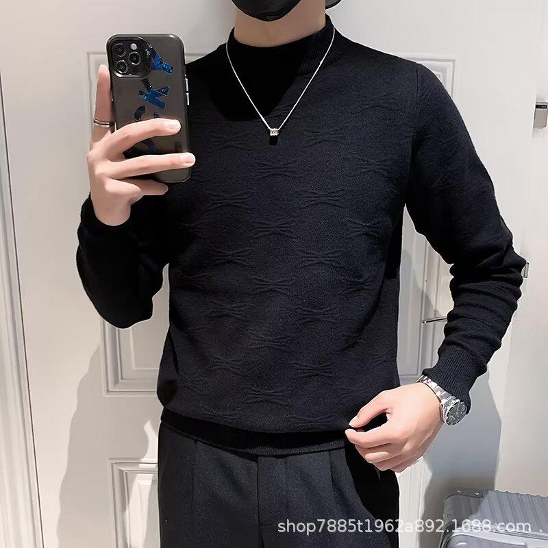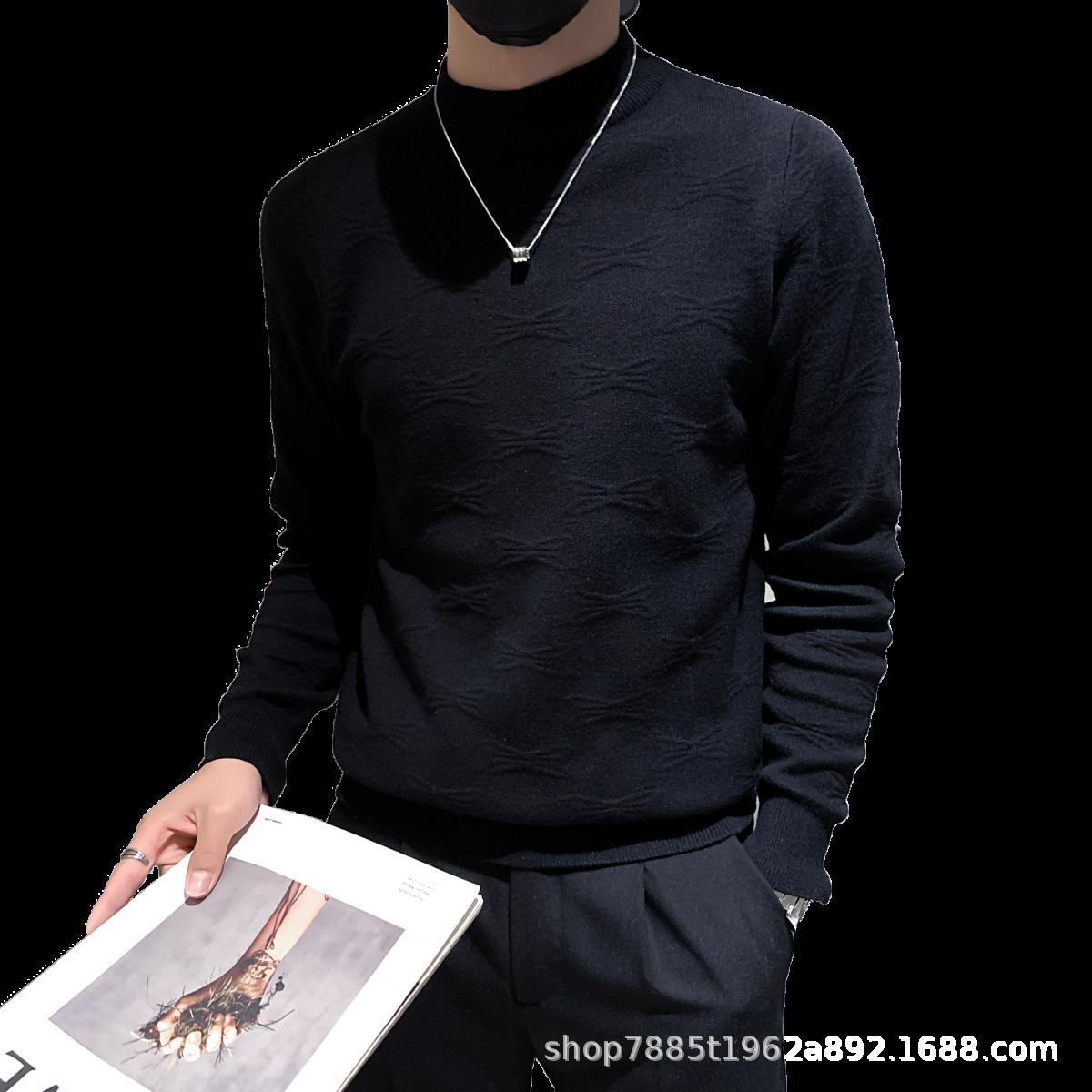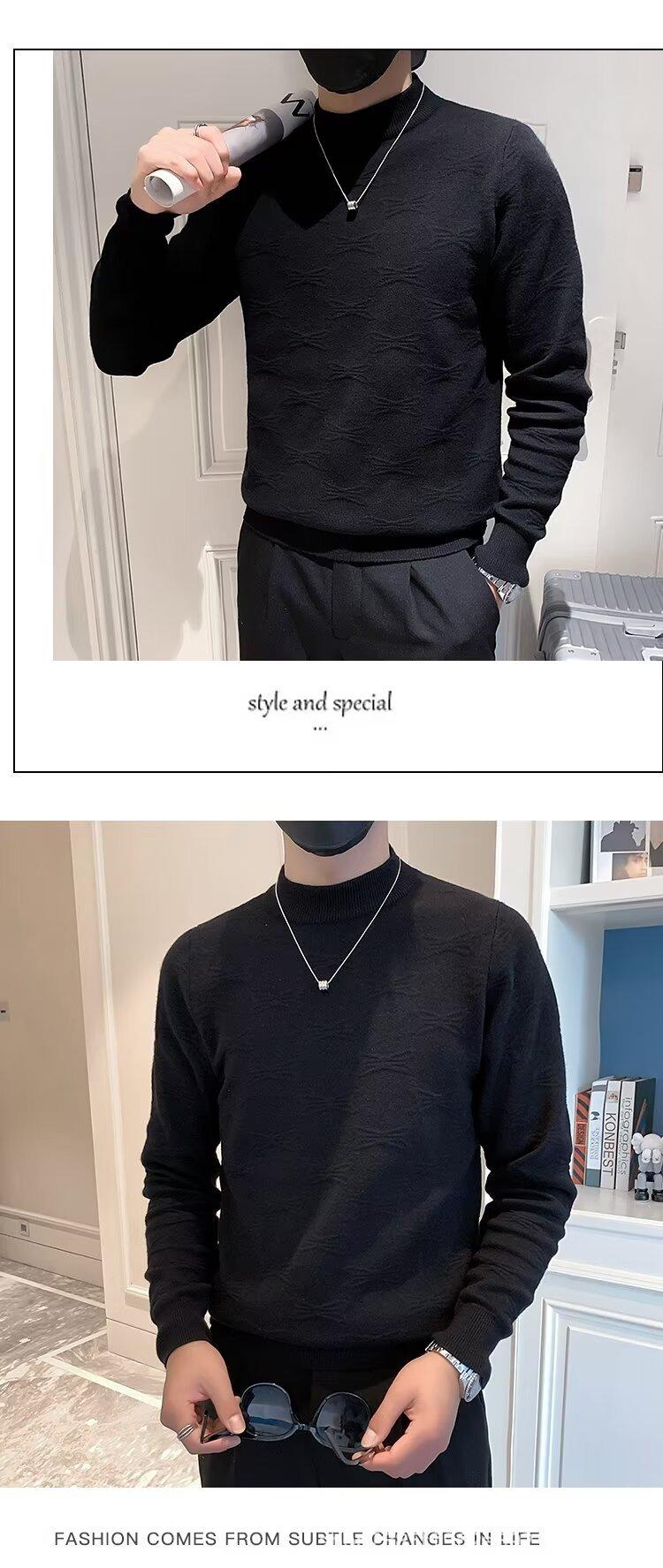 Popular core-spun yarn Outono Novo jacquard tridimensional masculino suéter de manga comprida versátil casual gola redonda top masculino