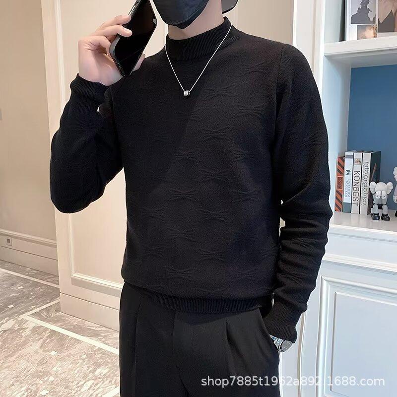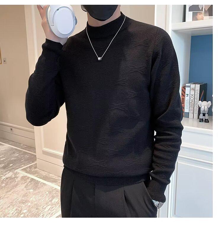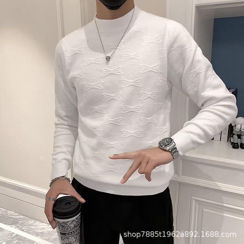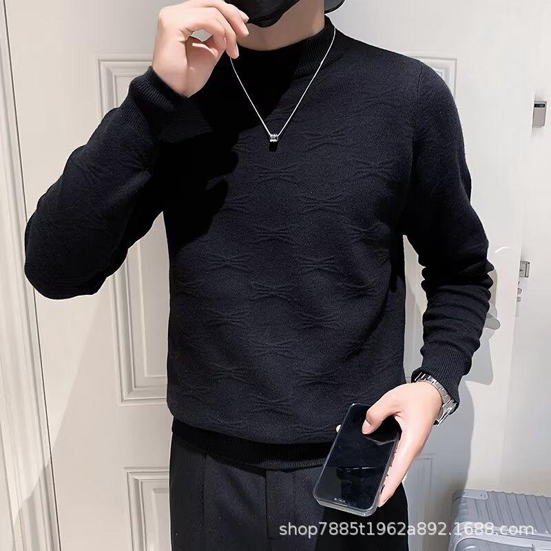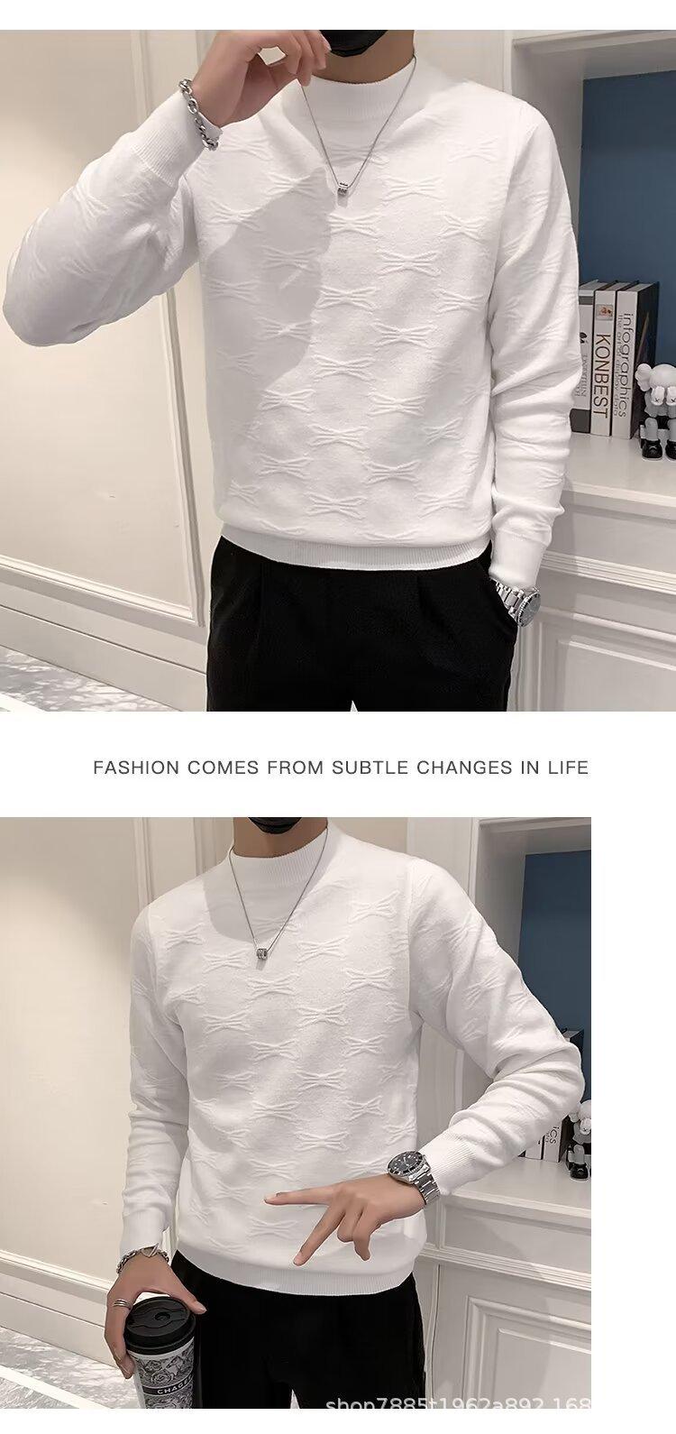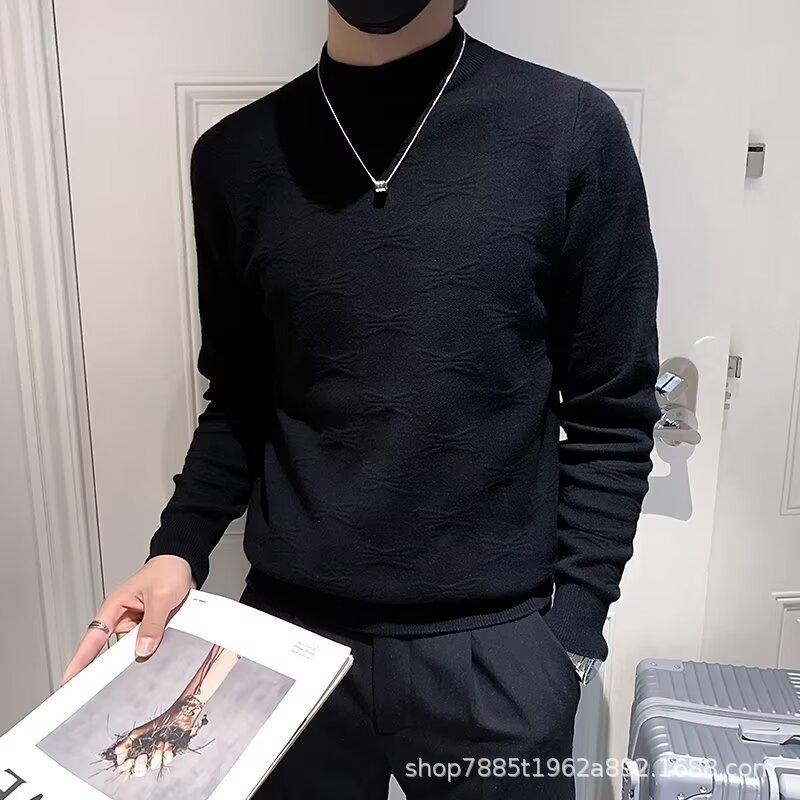 Popular core-spun yarn Outono Novo jacquard tridimensional masculino suéter de manga comprida versátil casual gola redonda top masculino