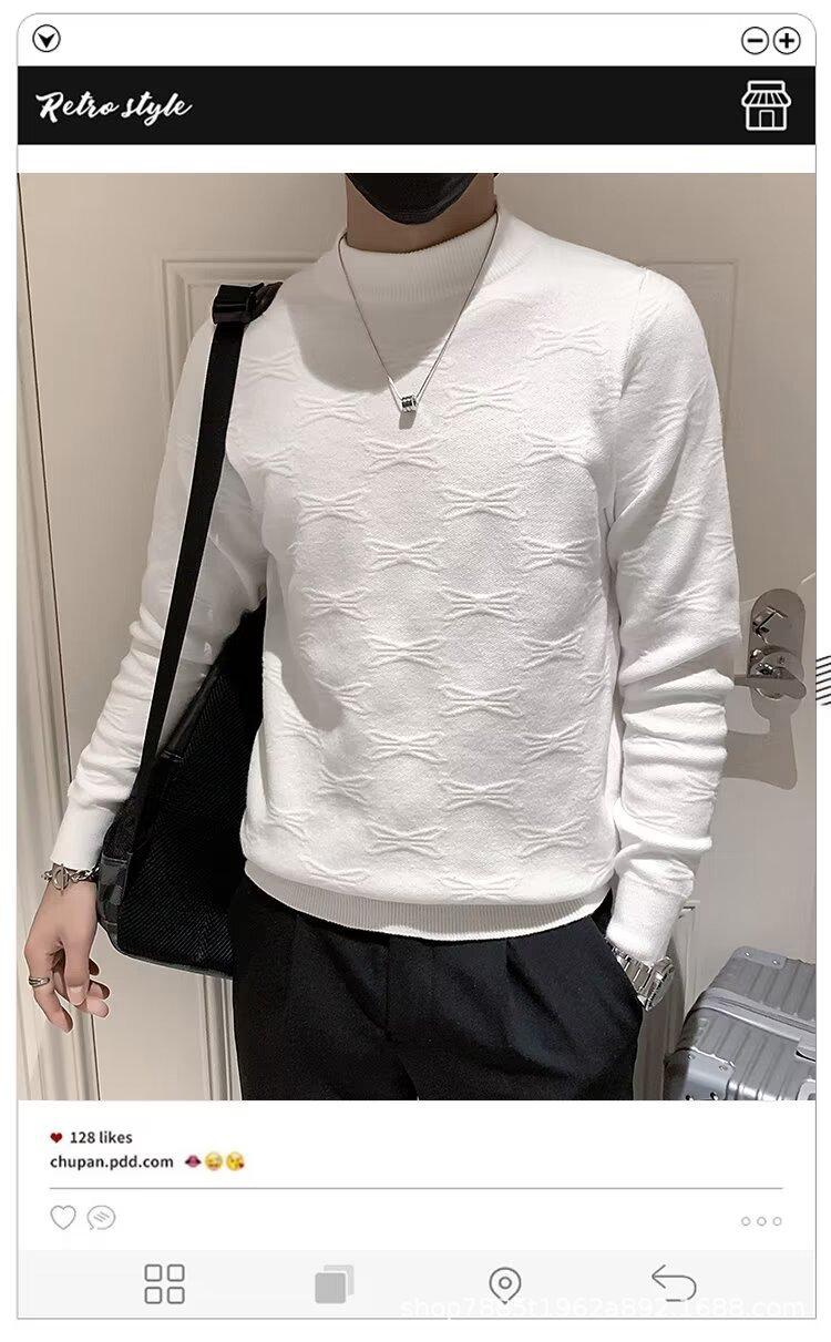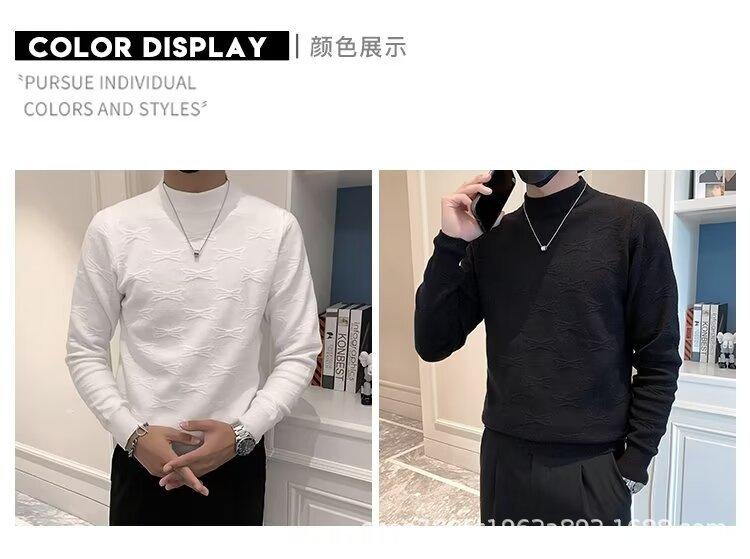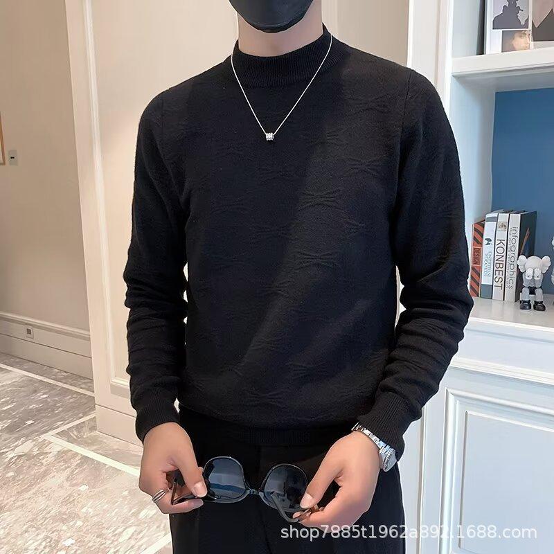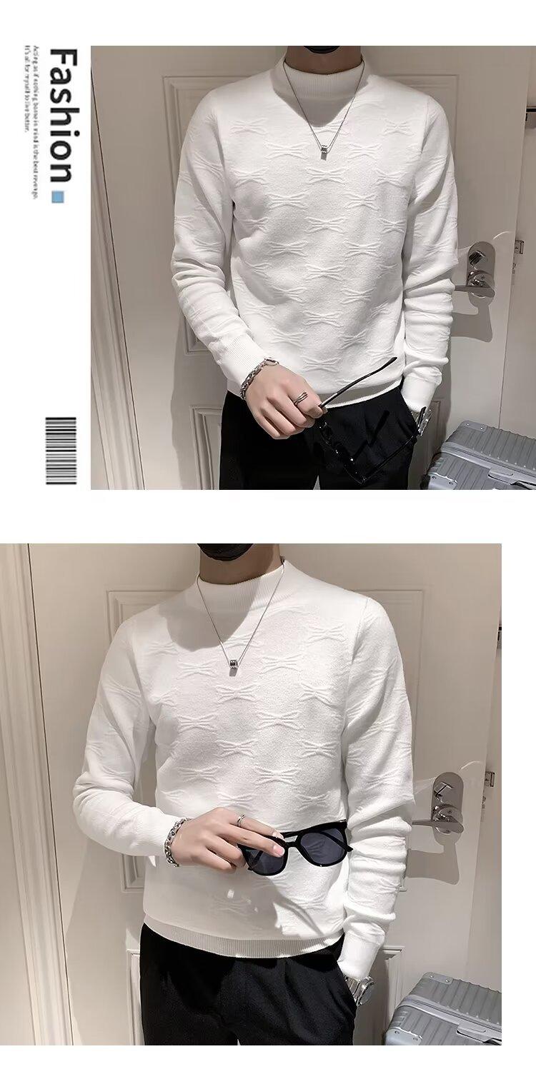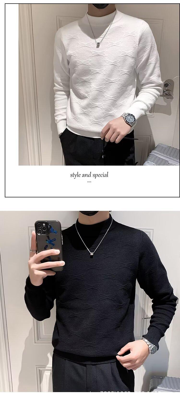 Popular core-spun yarn Outono Novo jacquard tridimensional masculino suéter de manga comprida versátil casual gola redonda top masculino