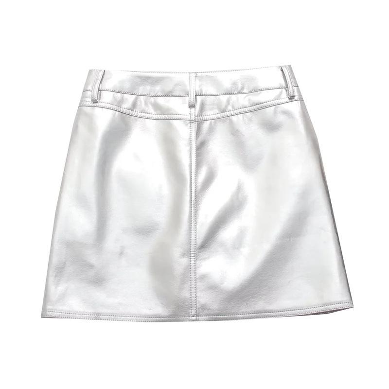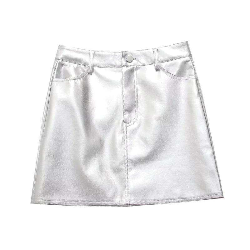 Compre Estilo europeu e americano 2024 primavera nova bainha faux saia de couro cintura alta emagrecimento sexy A- linha saia feminina no atacado no Joom.pro