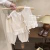 Terno de verão para meninas, bebê, estilo ocidental, infantil, personalizado, moderno, popular, estilo coreano, renda, sem costas, colete, anti-mosquito, calças