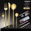 Talheres de aço inoxidável transfronteiriços, faca e garfo portugueses, colher, caixa de presente de quatro peças, terno, faca de bife ocidental, garfo, colher de sobremesa