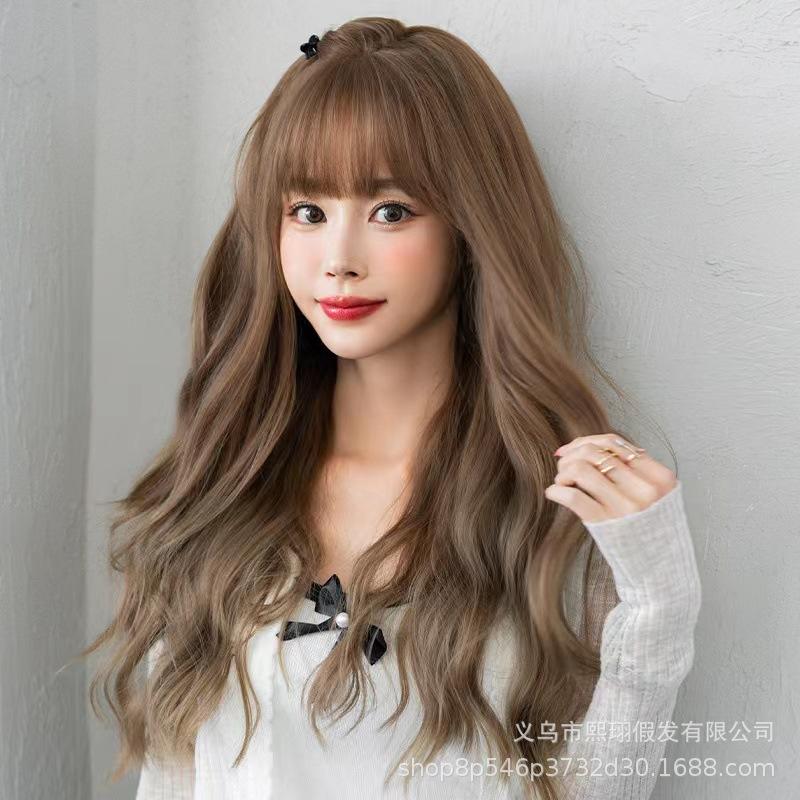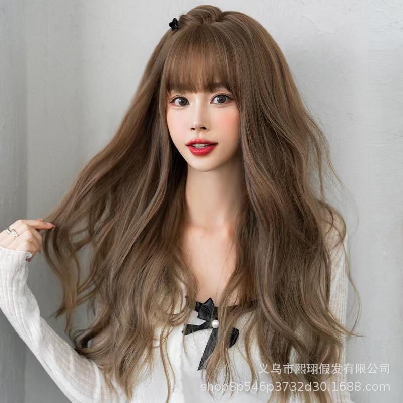 Peruca feminina longa e cacheada, nova, direto da fábrica, com pontas grandes e onduladas, fibra química, capa de cabeça, simulação de cabeça grande, couro, em estoque, atacado