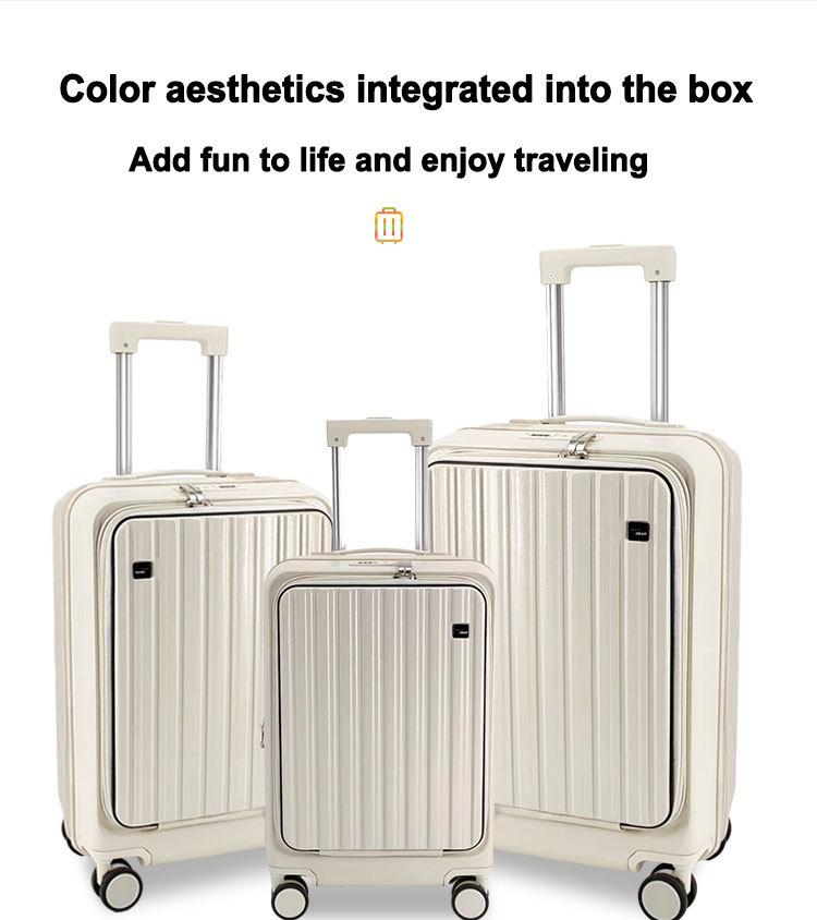Mala de viagem com zíper reto aberto frontal, mala de grande capacidade para exportação e comércio exterior, mala de embarque de 20 polegadas para homens e mulheres