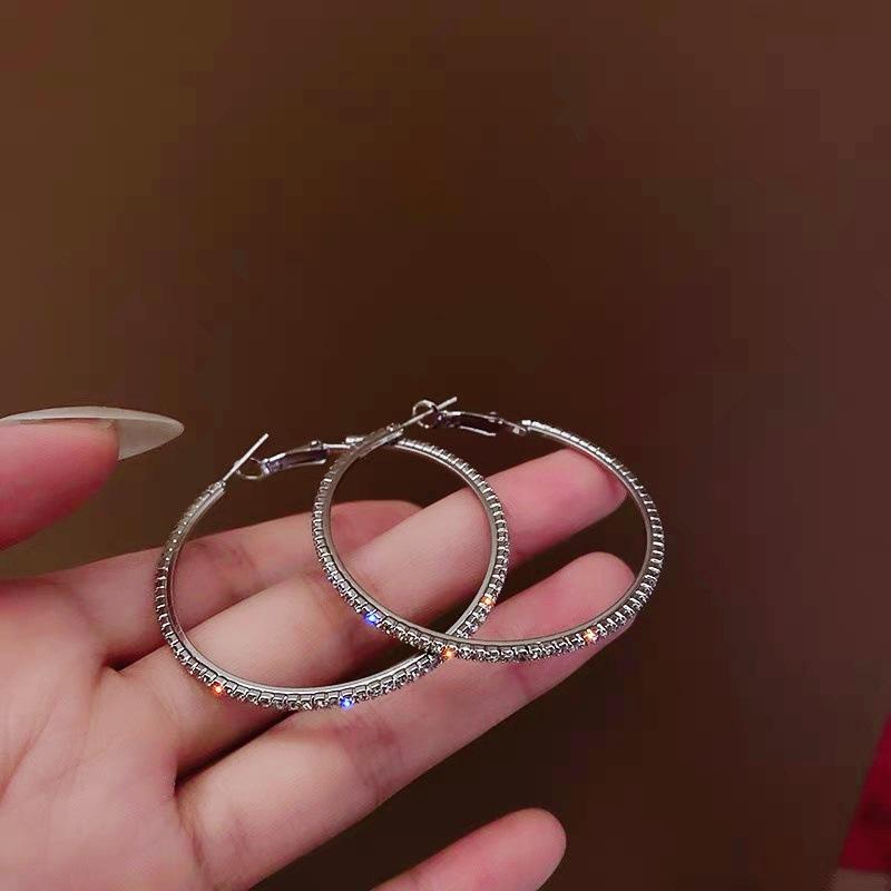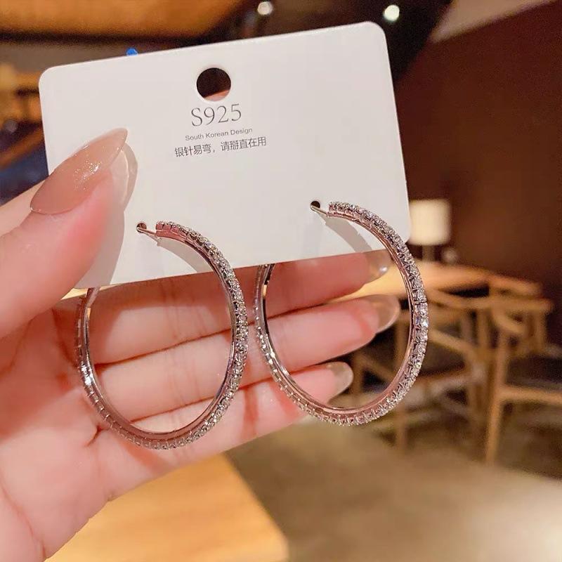 S925 agulha de prata diamante completo redondo frio estilo brincos brincos feminino Net Red europeu e americano elegante moda brincos brincos brincos