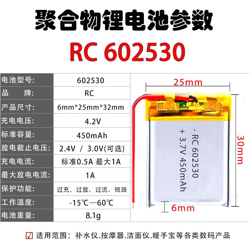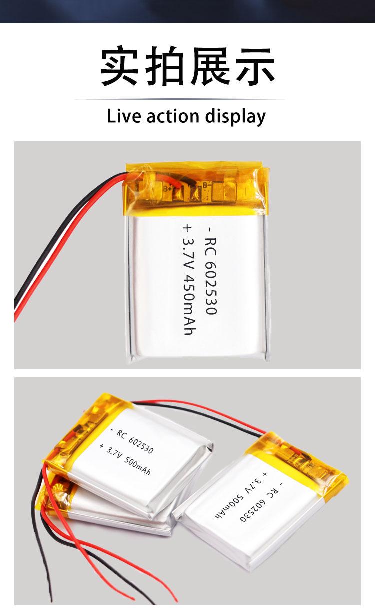 602530(450mAh)3.7V polímero de lítio bateria de água reabastecimento de instrumentos de massagem instrumento de massagem lote de bateria de lítio