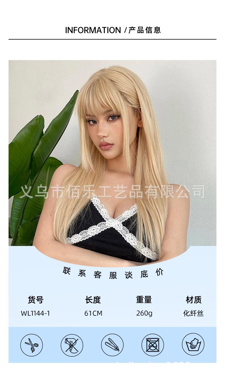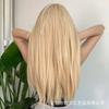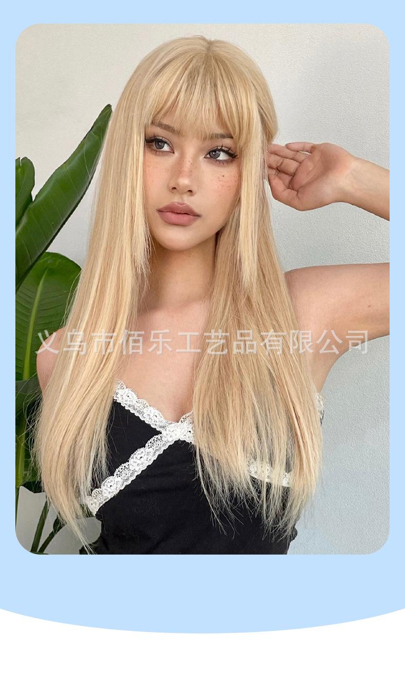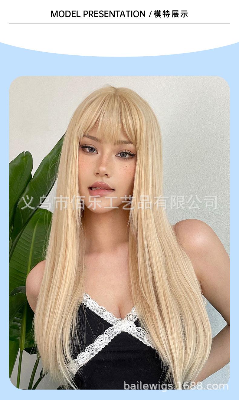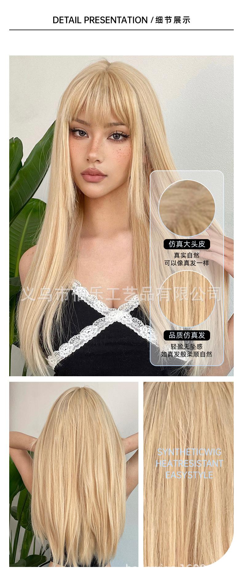 Peruca Estilo Europeu e Americano Franja Dourada Cabelo Longo Liso Cobertura Completa Fabricante de Fibra de Alta Temperatura Perucas Atacado Transfronteiriço