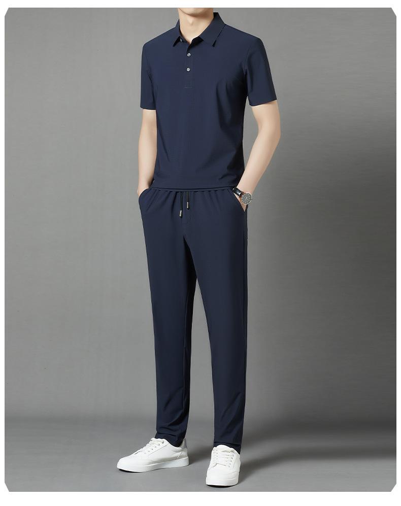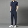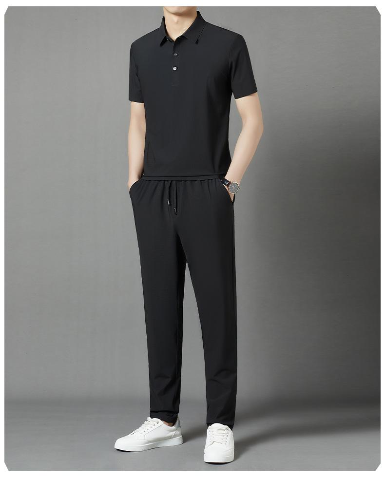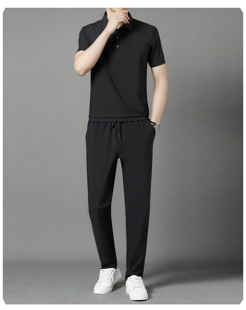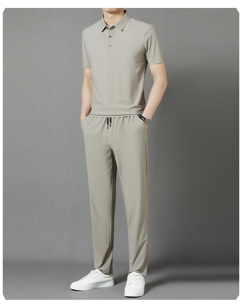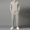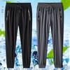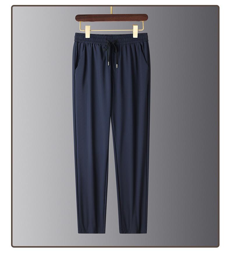 Verão Gelo Seda Alta Cintura Elástica Reta Solta Leve Homens Casual Calças Zipper Bolso Calças Longas