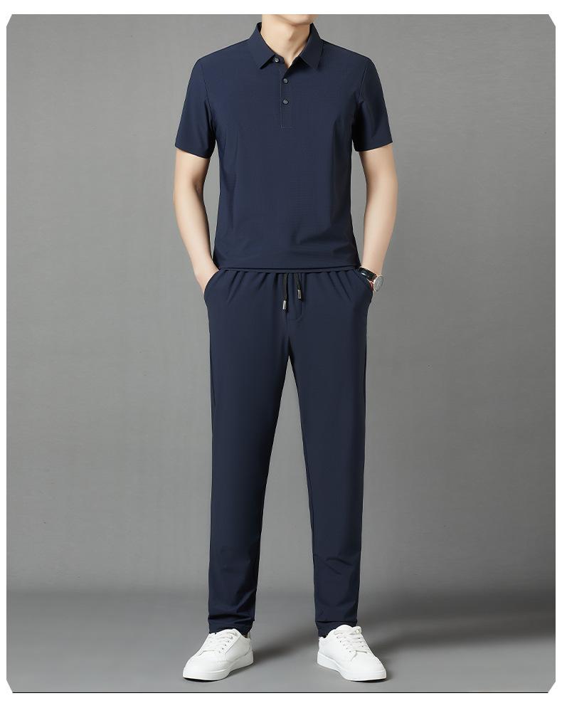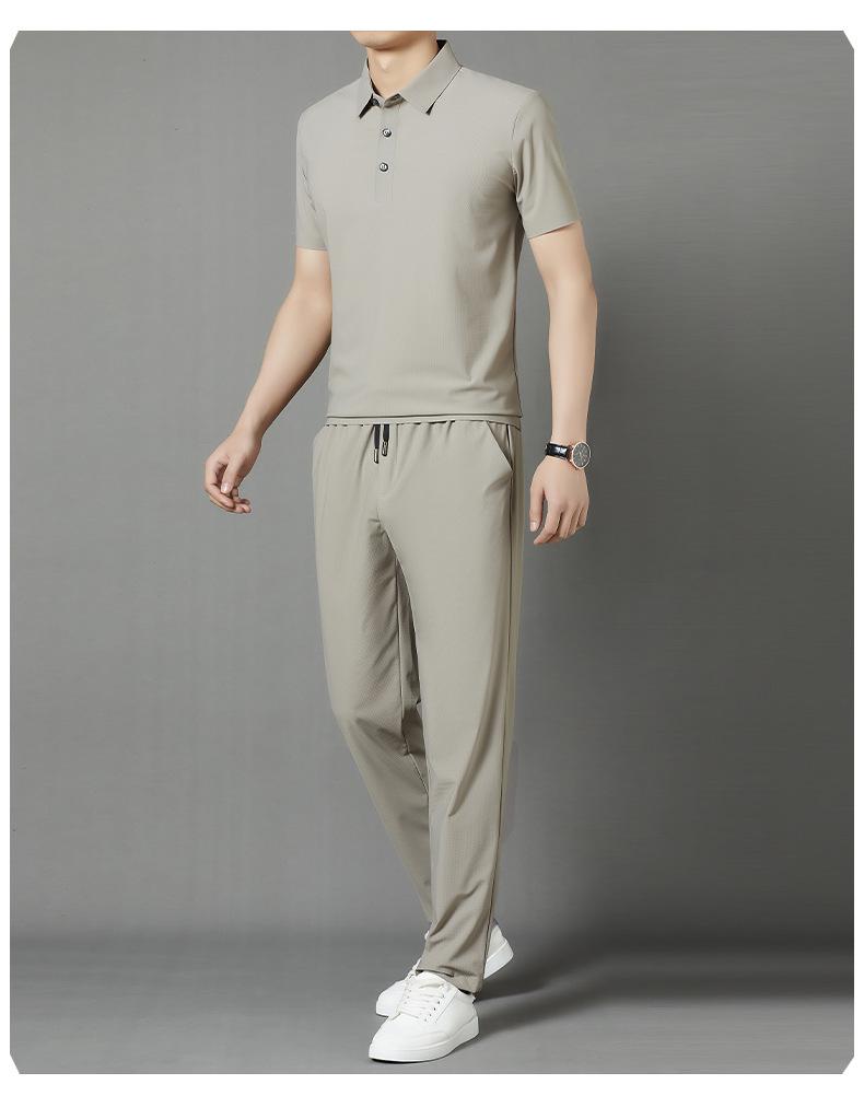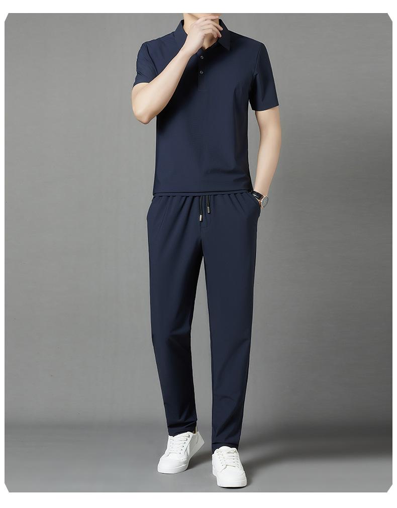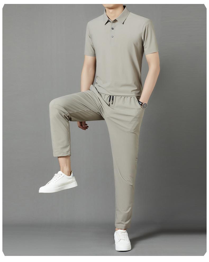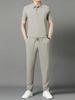 Verão Gelo Seda Alta Cintura Elástica Reta Solta Leve Homens Casual Calças Zipper Bolso Calças Longas
