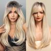 Transfronteiriço europeu e americano misto marrom peruca de onda grande franja xale longo cabelo cacheado delicado fofo peruca de seda de alta temperatura