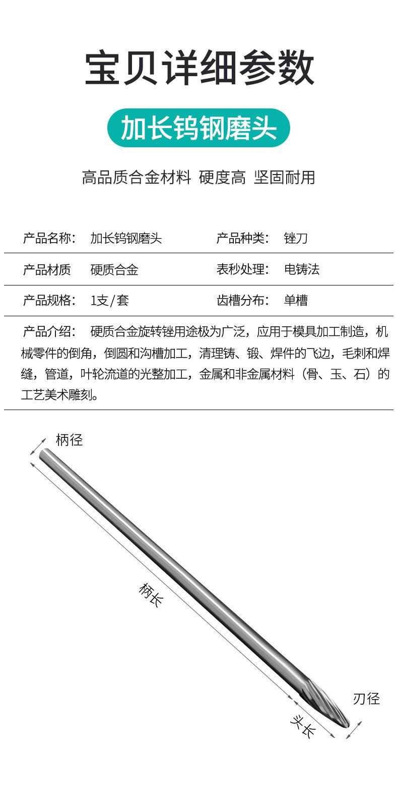 Compre 100 longa liga dura rotativa arquivo de extensão haste tungstênio aço metal cabeça de moagem ferramenta marcenaria talhar cabeça de cortador 6mm punho no atacado no Joom.pro