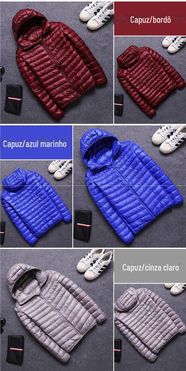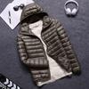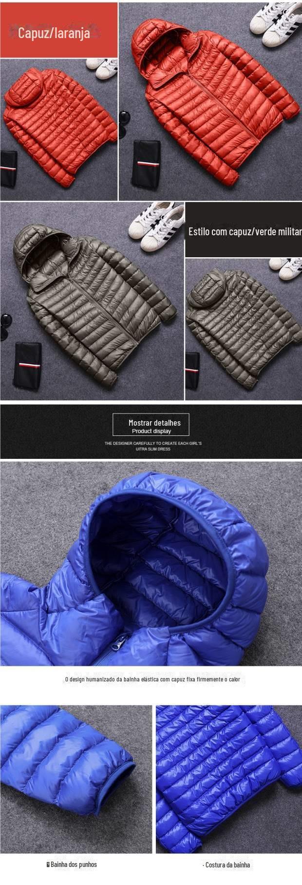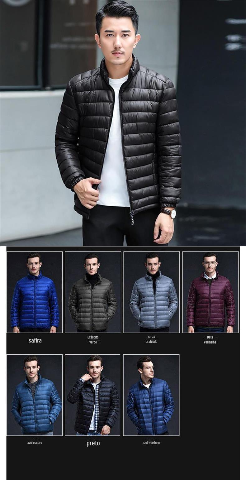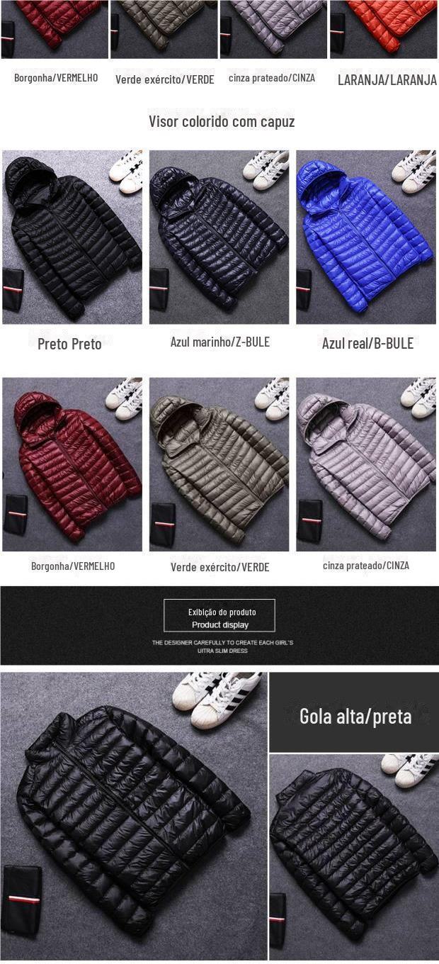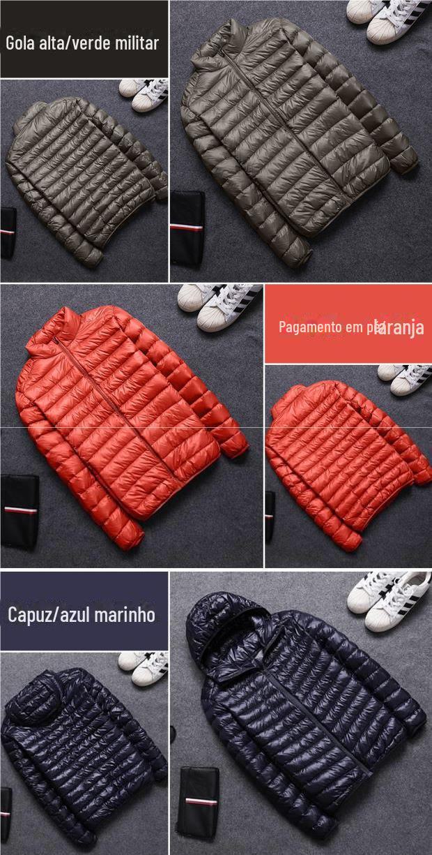 Stand Collar encapuzado para baixo algodão-acolchoado jaqueta masculina outono e inverno leve jovem e de meia-idade quebrado código marca processamento curto plus size