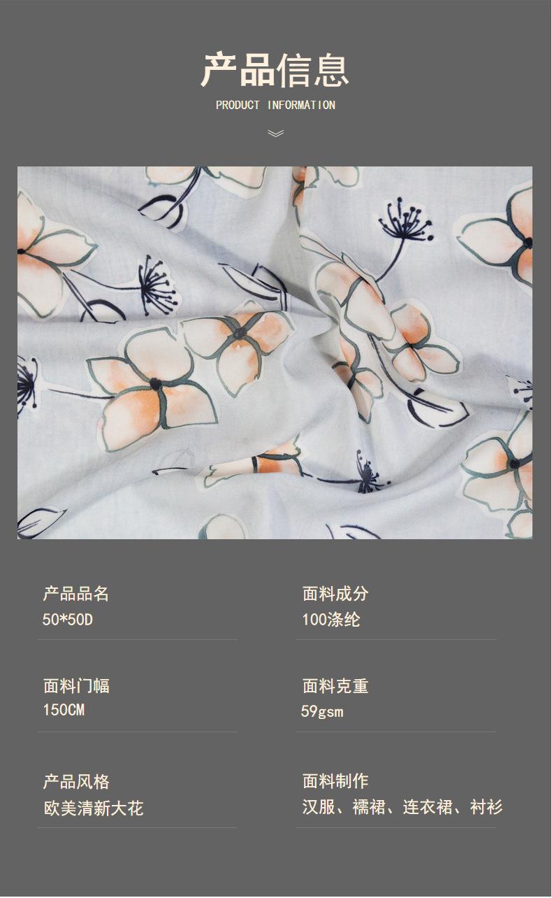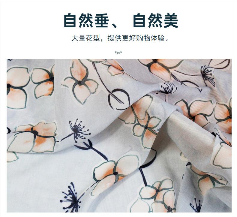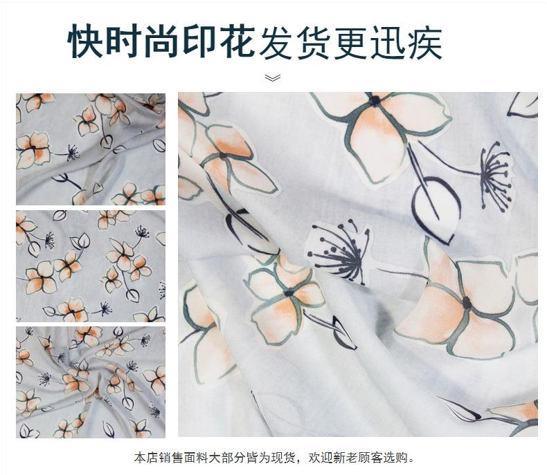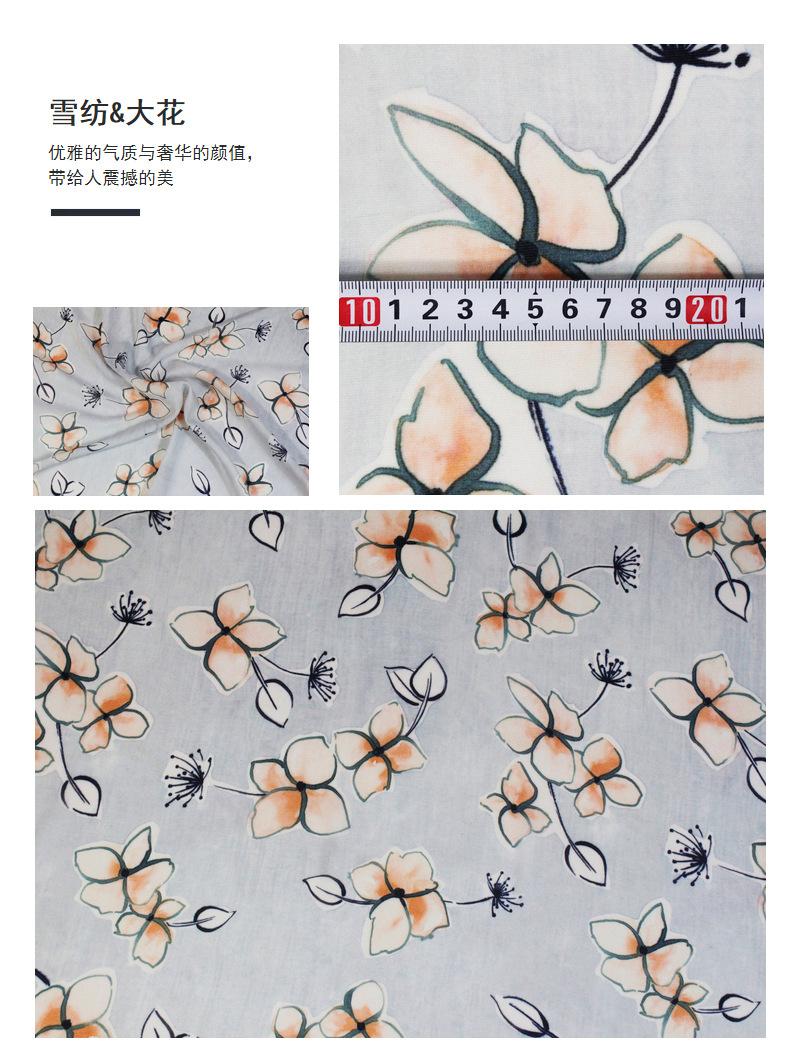 Em estoque D9 transferência digital cinza verde fundo flor chiffon ar fresco impresso pano vestido tecido fornecimento